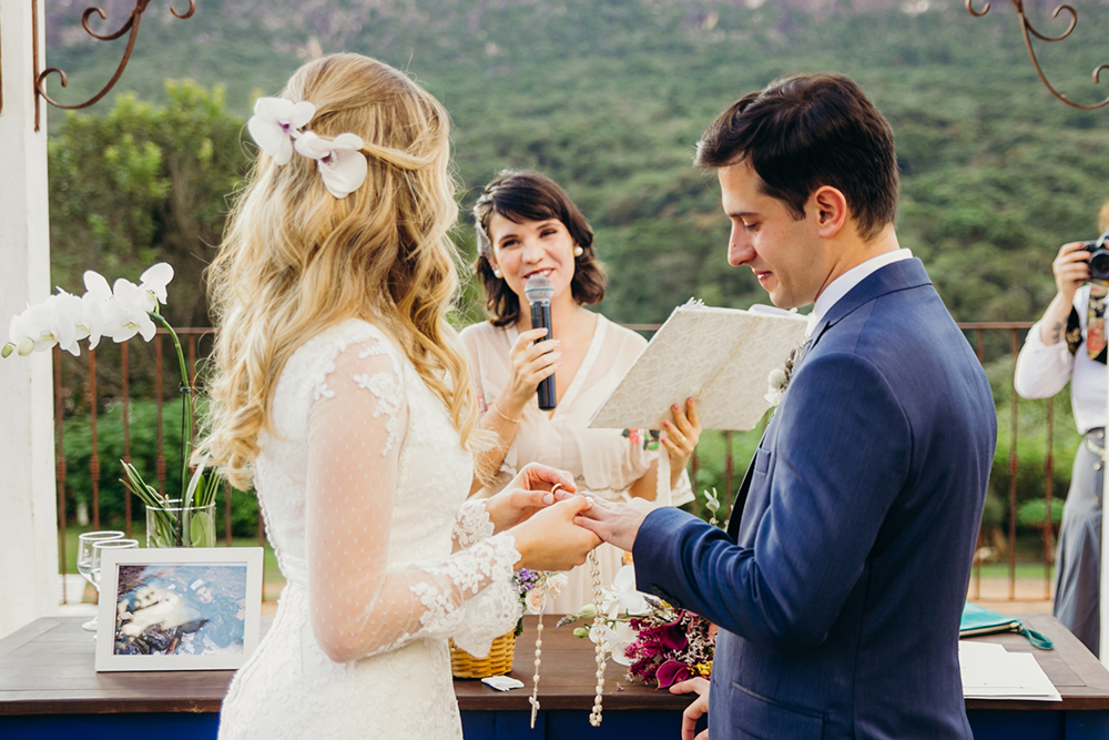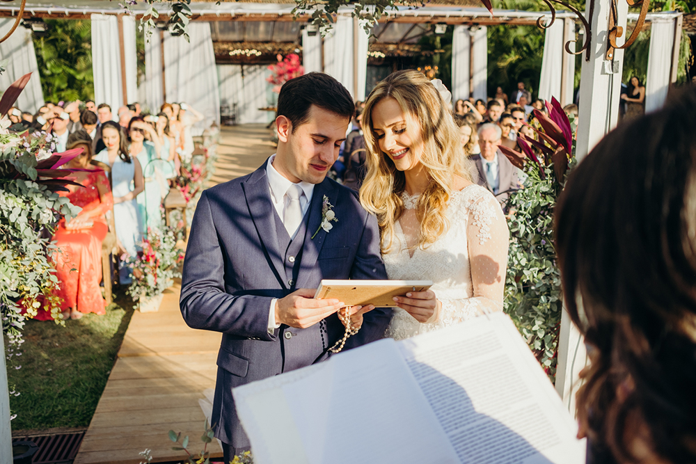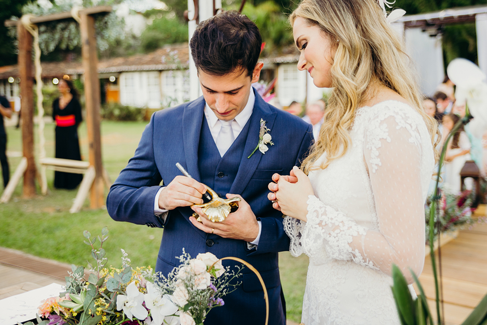 Foi exatamente assim, de forma leve e colorida, que eles trocaram alianças em uma cerimônia abençoada.
