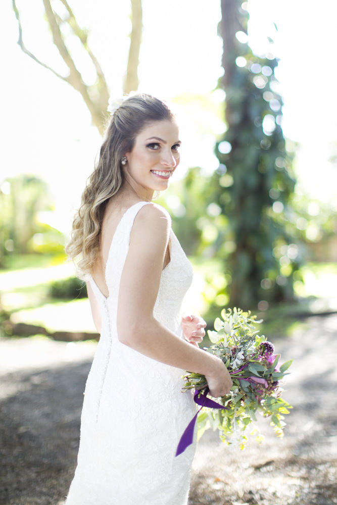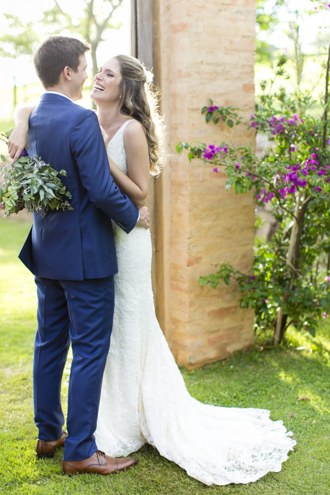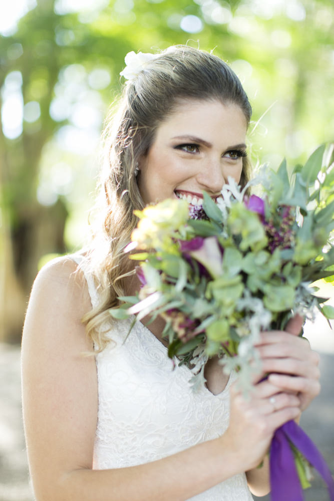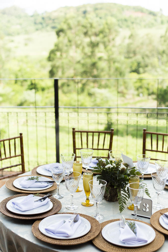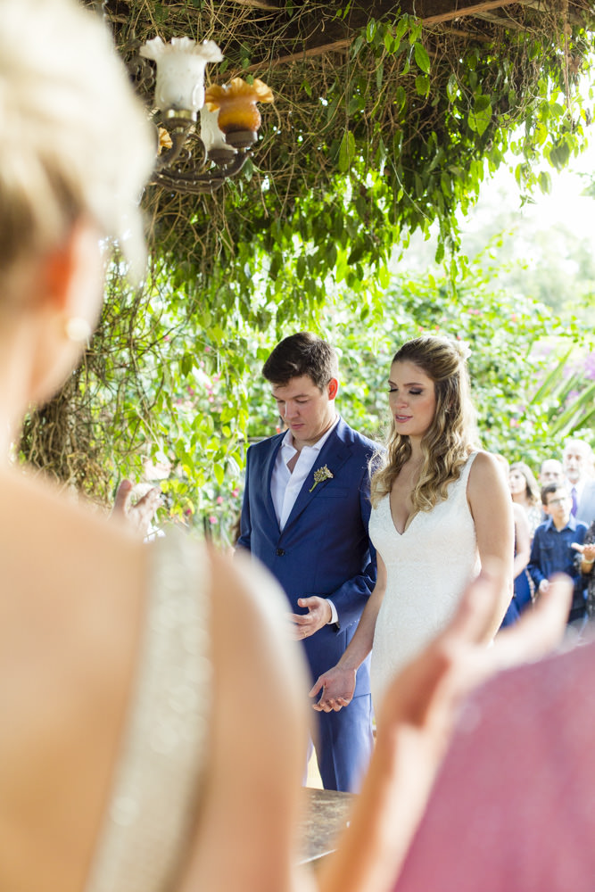 Eu sempre quis casar ao ar livre e quando a tendência Greenery saiu, senti que era a nossa cara! Amamos verde! Com isso, resolvemos casar em um local incrível e com a melhor decoradora, que fez tudo do jeitinho que queríamos! Estava com previsão de chuva e no dia anterior tinha chovido MUITO, mas algo aconteceu e a chuva foi embora… Ficamos com um sol maravilhoso de final de tarde e uma noite perfeita!