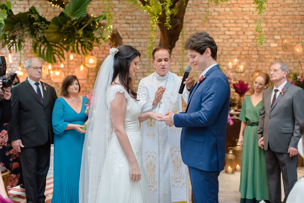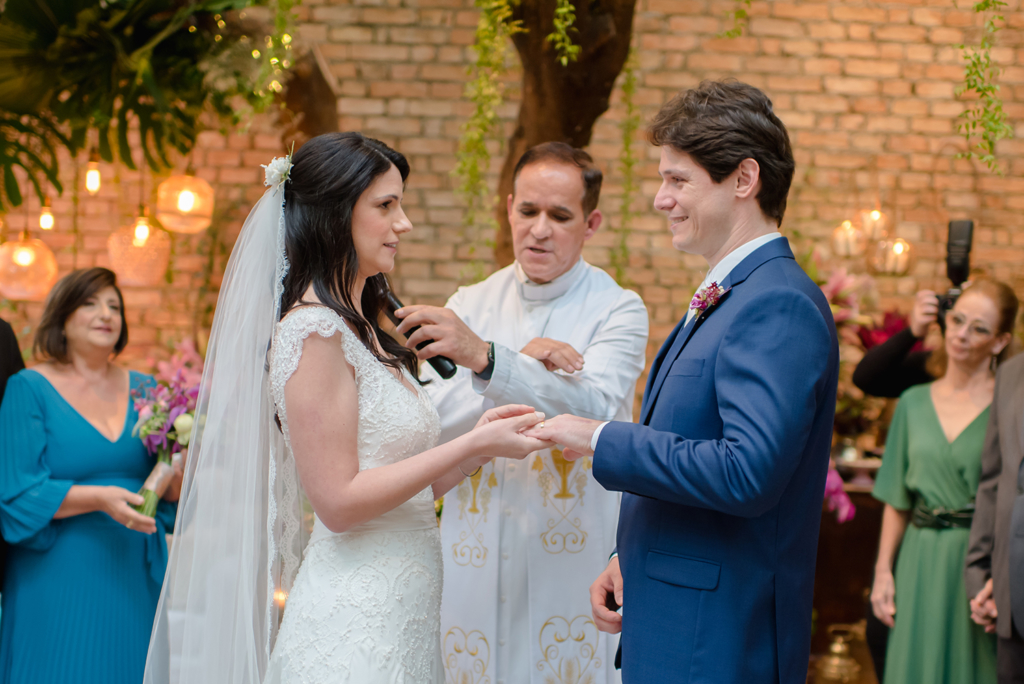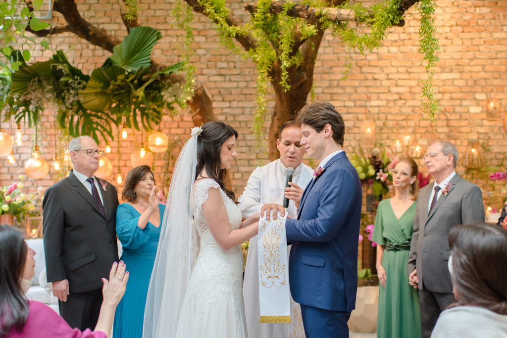 Aliás, além dos convidados presentes, eles receberam a energia de mais de 100 pessoas que puderam acompanhar a troca de alianças online, através da transmissão ao vivo.