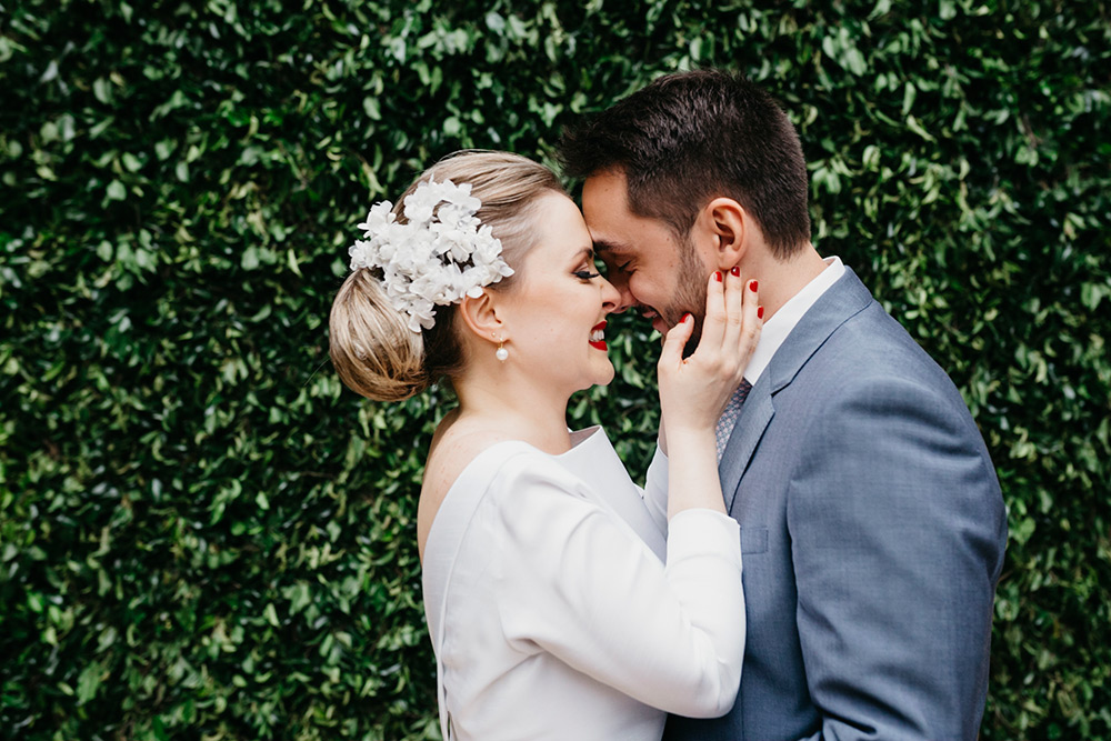 Eu ouvi “noiva de batom vermelho”? Siiim! A noiva da vez ficou uma verdadeira diva de Hollywood, com direito a vestido minimalista (lindo de viver) e muito estilo!