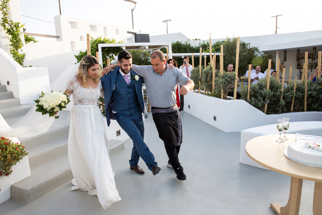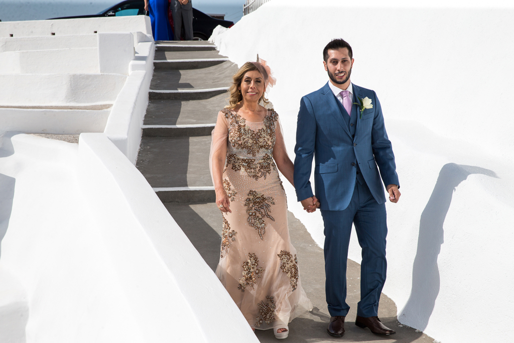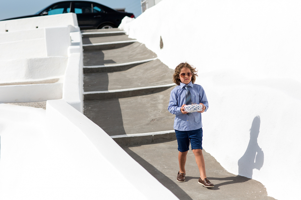 Em Santorini há algumas limitações… Nem toda rua está liberada para a passagem de carros e a logística de se organizar um casamento lá exige critério. Nosso concierge local deu um show!