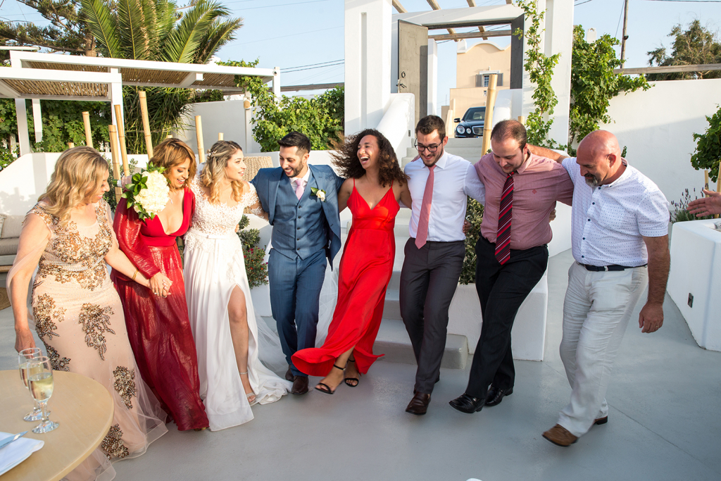 Santorini foi a ilha elegida pelo casal e sabíamos que pelo menos 20 convidados embarcariam também.