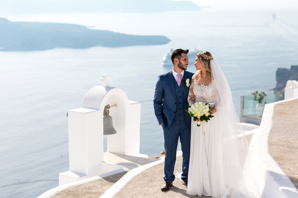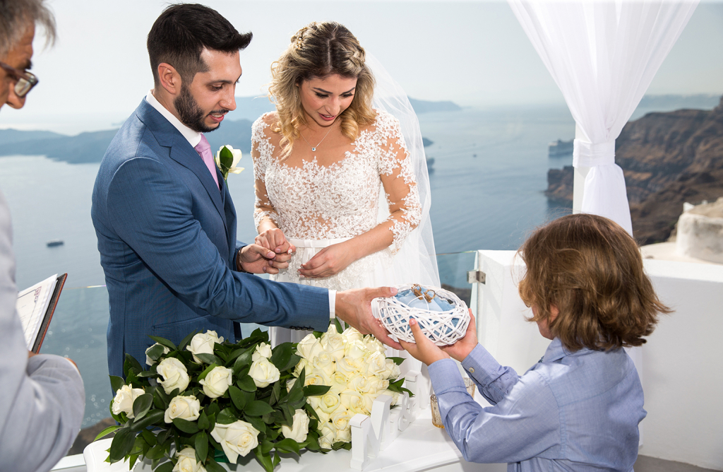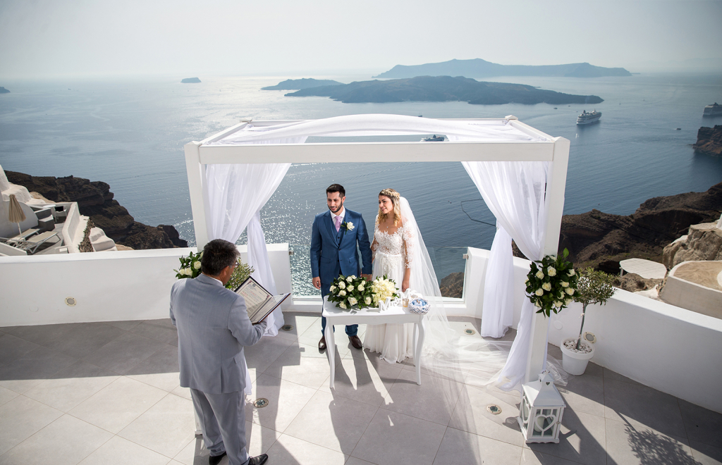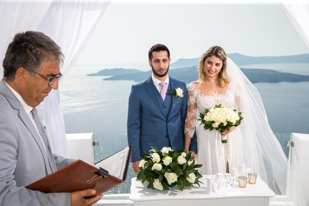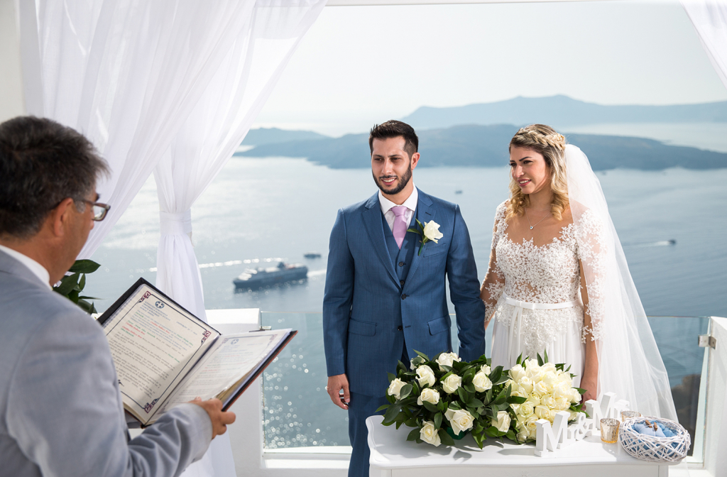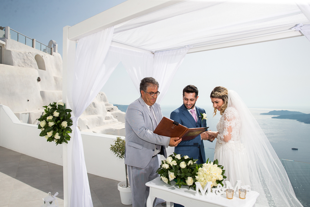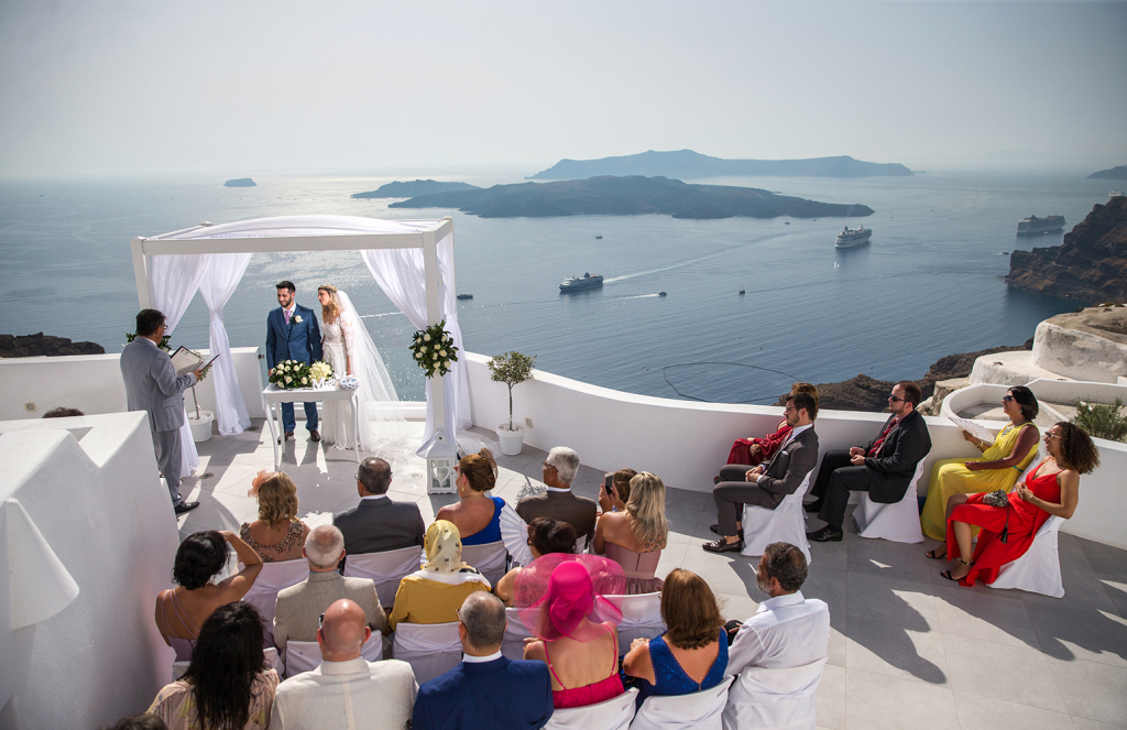 Falando em peculiaridades, sabia que em Santorini a celebração só pode ser feita por eles em grego e inglês?