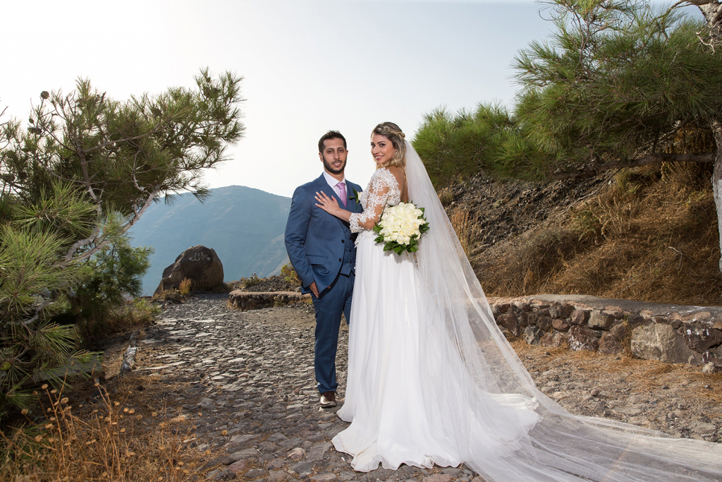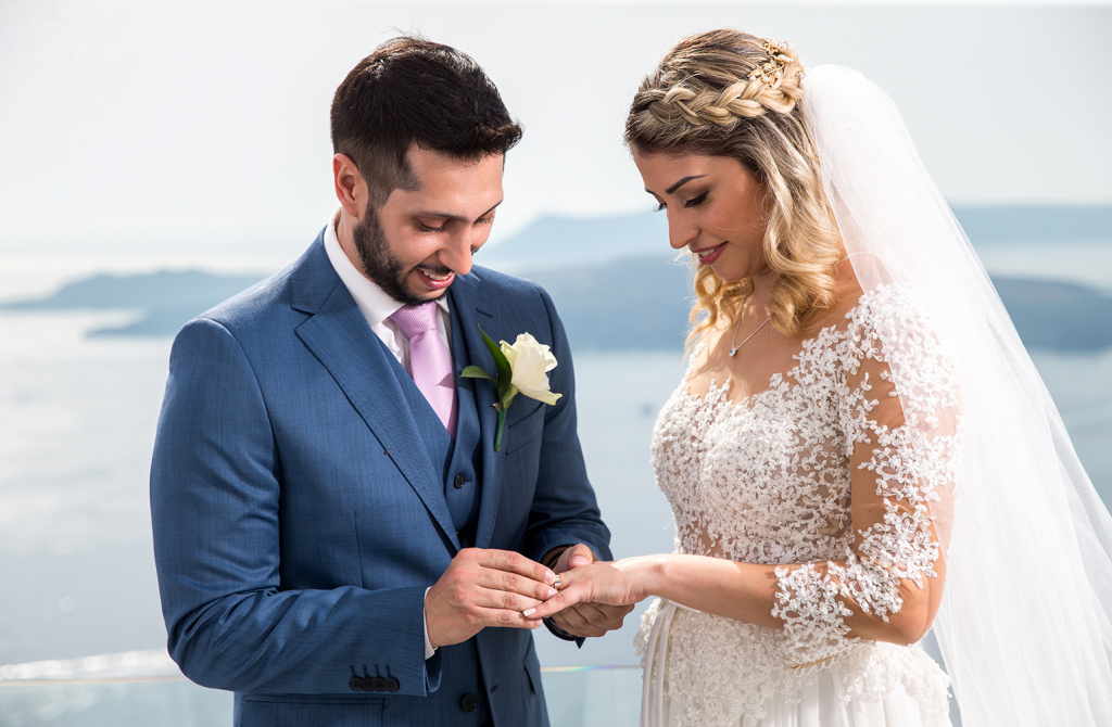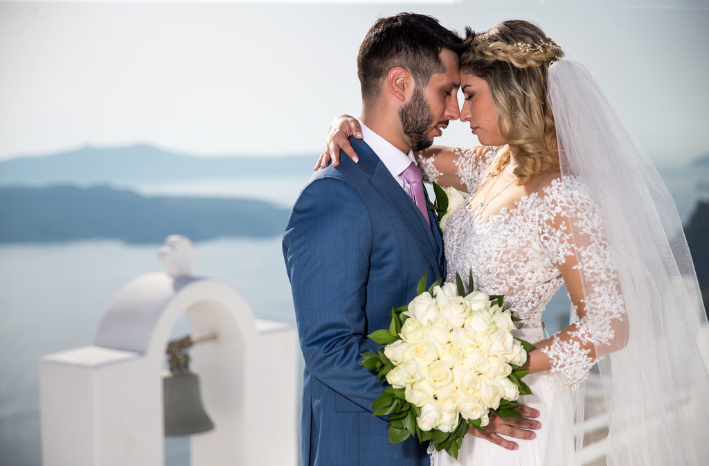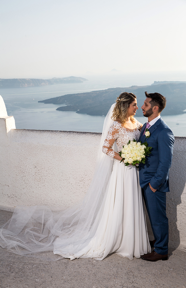 Carolina e Nasser tiveram um lindo casamento em Santorini, na Grécia.