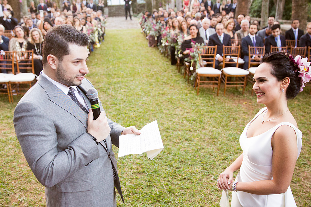 Preparamos o orçamento, mapeamos os fornecedores e fomos atrás das negociações para não passarmos o teto que tínhamos estipulado. Era muito engraçado porque todos desacreditavam que estávamos planejando um casamento em tão pouco tempo… Começando pelo vestido, já que havia o desafio de preparar um vestido do zero, considerando as especificações que eu queria… Pra ser sincera, acho que foi coisa do destino, pois todos os fornecedores que queríamos não somente tinham a data disponível, mas também abraçaram este casamento.