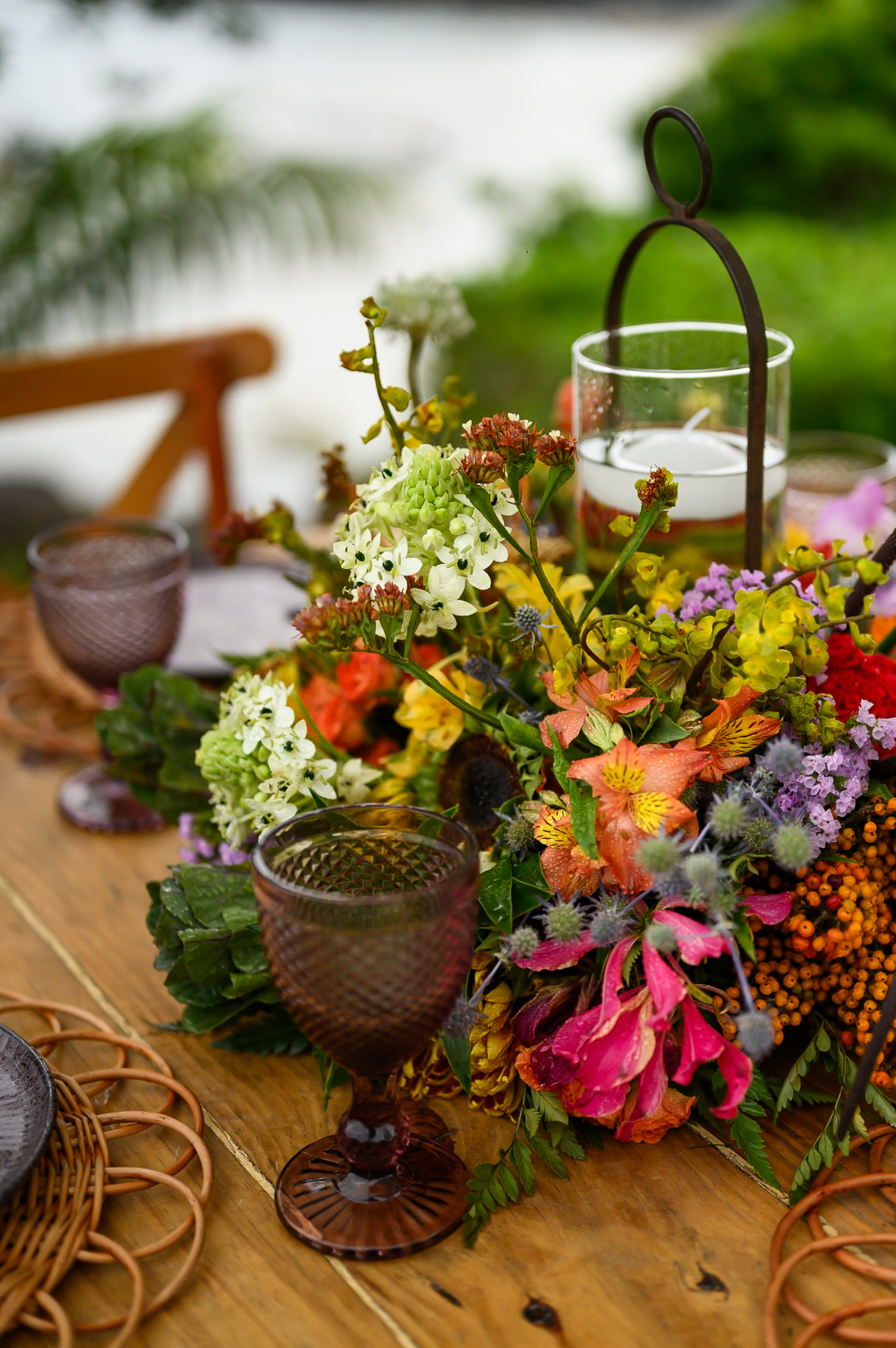 A decor, claro, foi assinada pela noiva, agregando o clima tropical que é uma das marcas de seu trabalho.