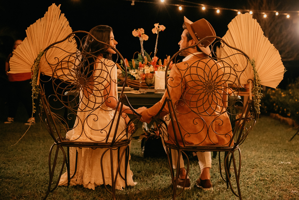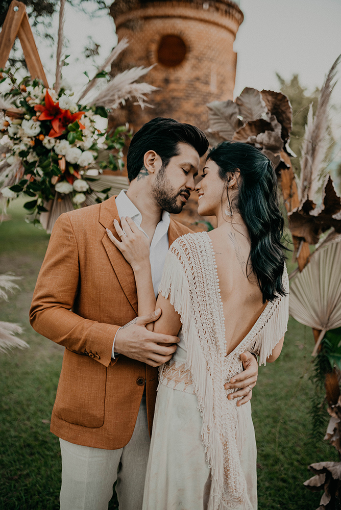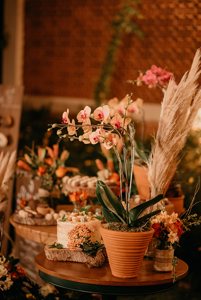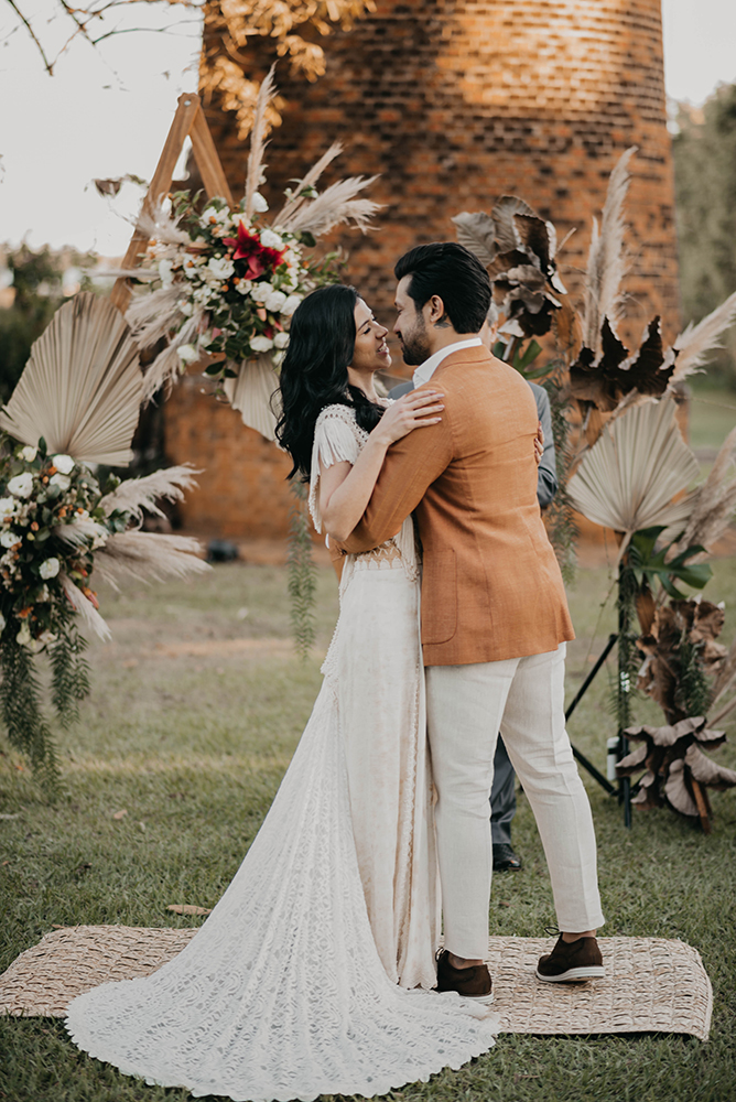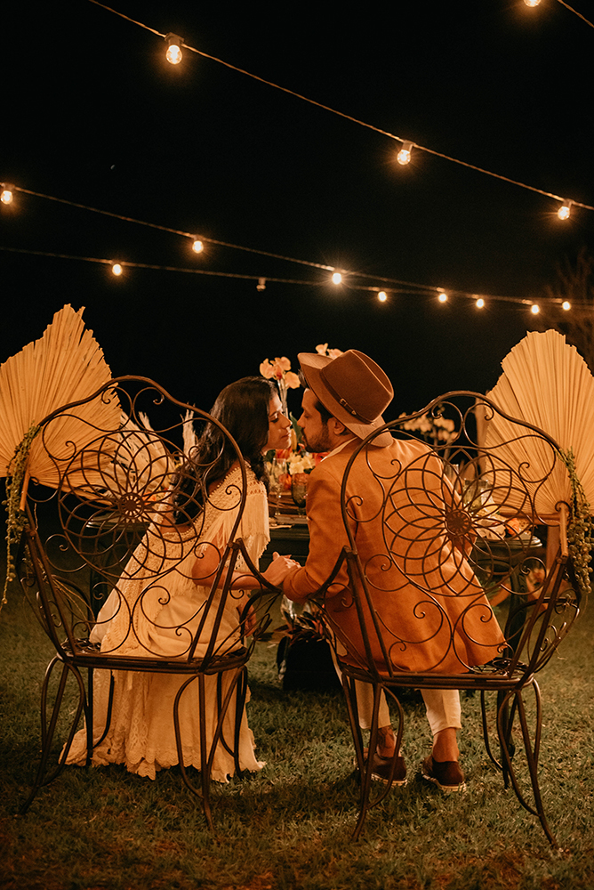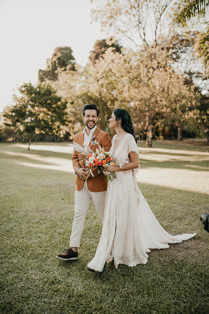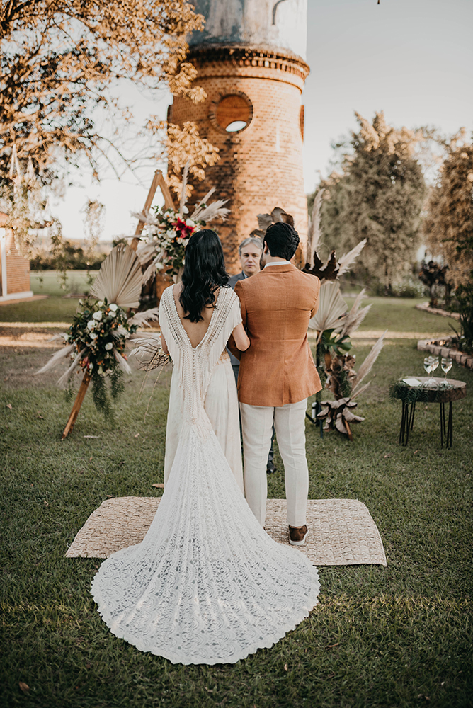 Com pegada boho, tons terrosos, flores, canções, doces e outros tantos elementos cuidadosamente agregados para criar o clima perfeito, os noivos tiveram um verdadeiro cenário dos sonhos. Assim, ficou ainda mais fácil se entregar ao momento e trazer à tona emoções reais.