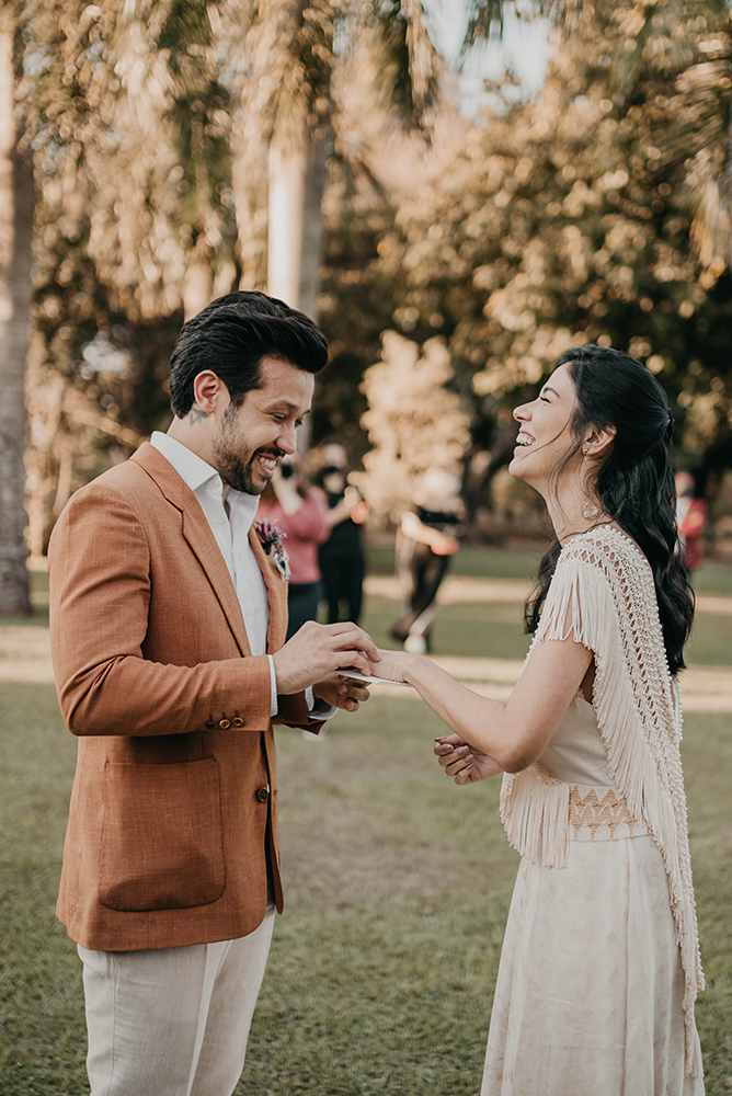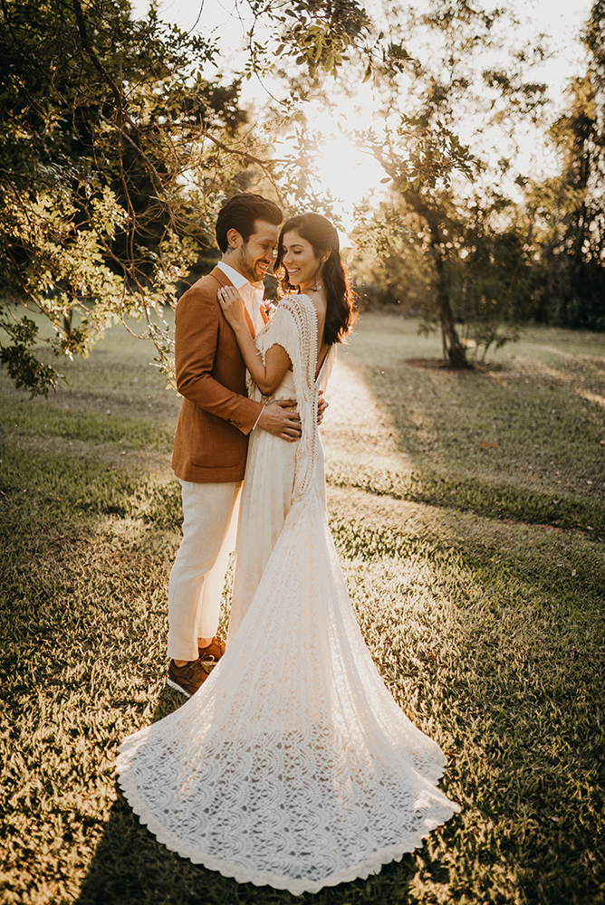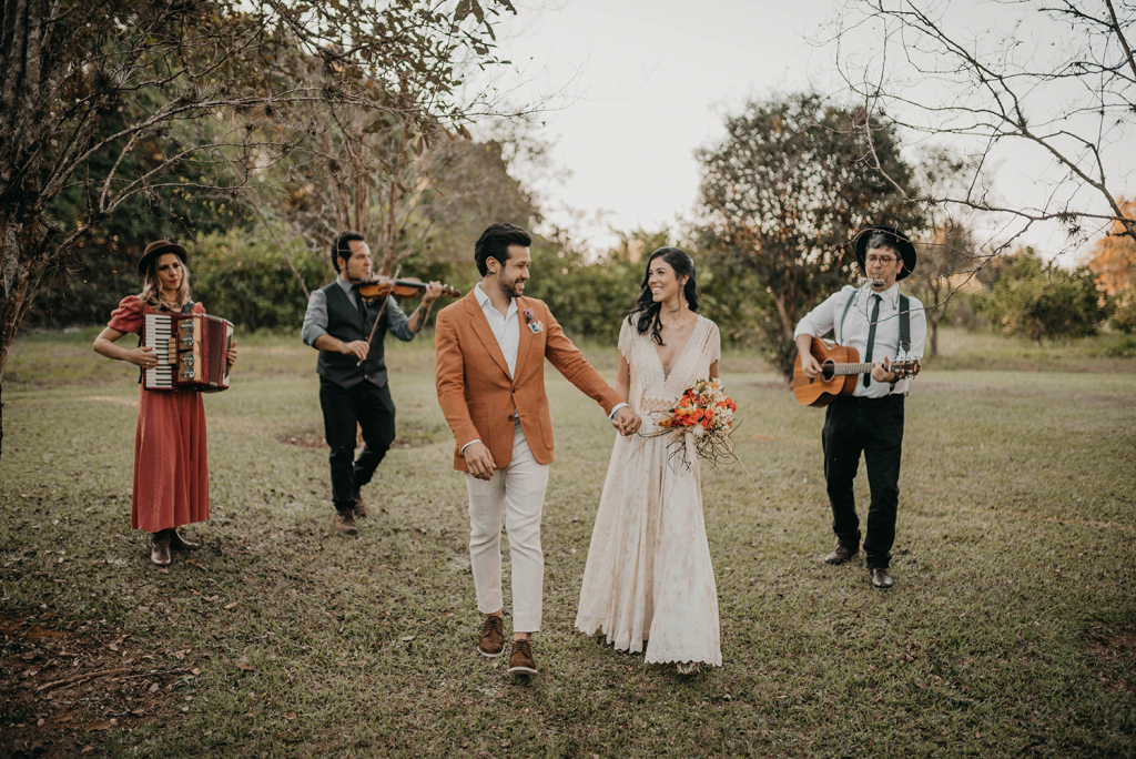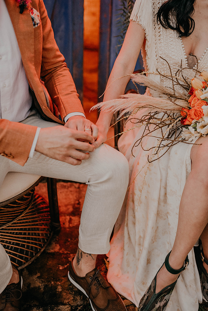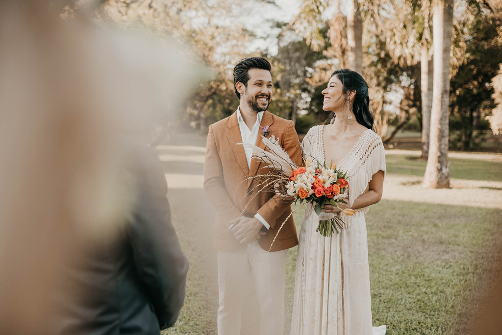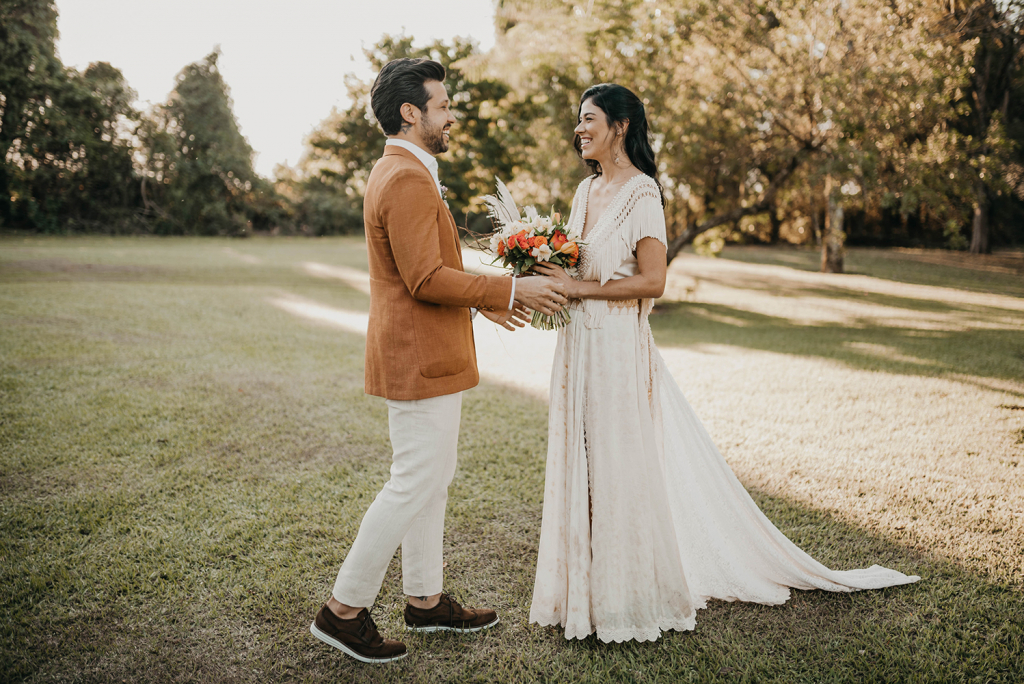 Com pegada boho, tons terrosos, flores, canções, doces e outros tantos elementos cuidadosamente agregados para criar o clima perfeito, os noivos tiveram um verdadeiro cenário dos sonhos. Assim, ficou ainda mais fácil se entregar ao momento e trazer à tona emoções reais.