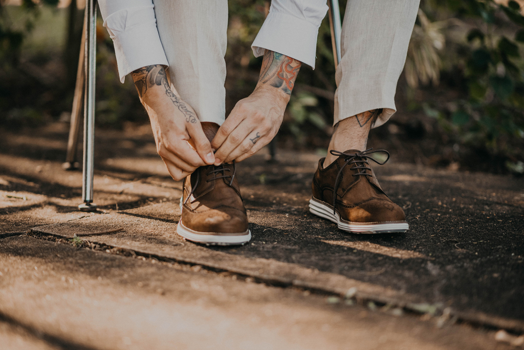 O vestido para nossa noiva vegetariana não poderia ter sido mais perfeito, produzido pela Camila Machado, o vestido tem impressão botânica de camomila e macela, e não apenas ele, mas a bota usada pela Lu também é do Ateliê Lascivité, que tem um trabalho lindíssimo e sempre voltado para o natural e sustentável. Para finalizar o visual encantador, a noiva usou um brinco maravilhoso da Mari Peres feito a mão com todo carinho.