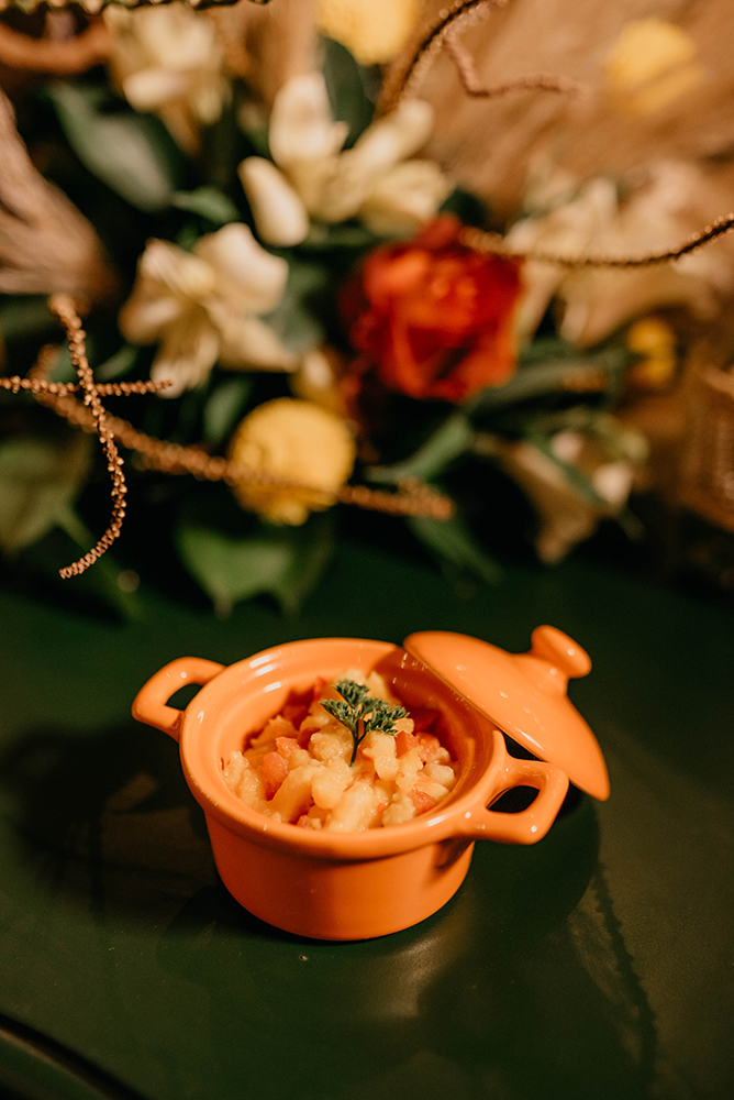 Nosso casal foi servido pelo Fazan Buffet com um jantar delicioso de diversos pratos, entre eles as opções vegetarianas pensadas para a Lu. Eles também brindaram com drinks da Liquid Coquetéis.