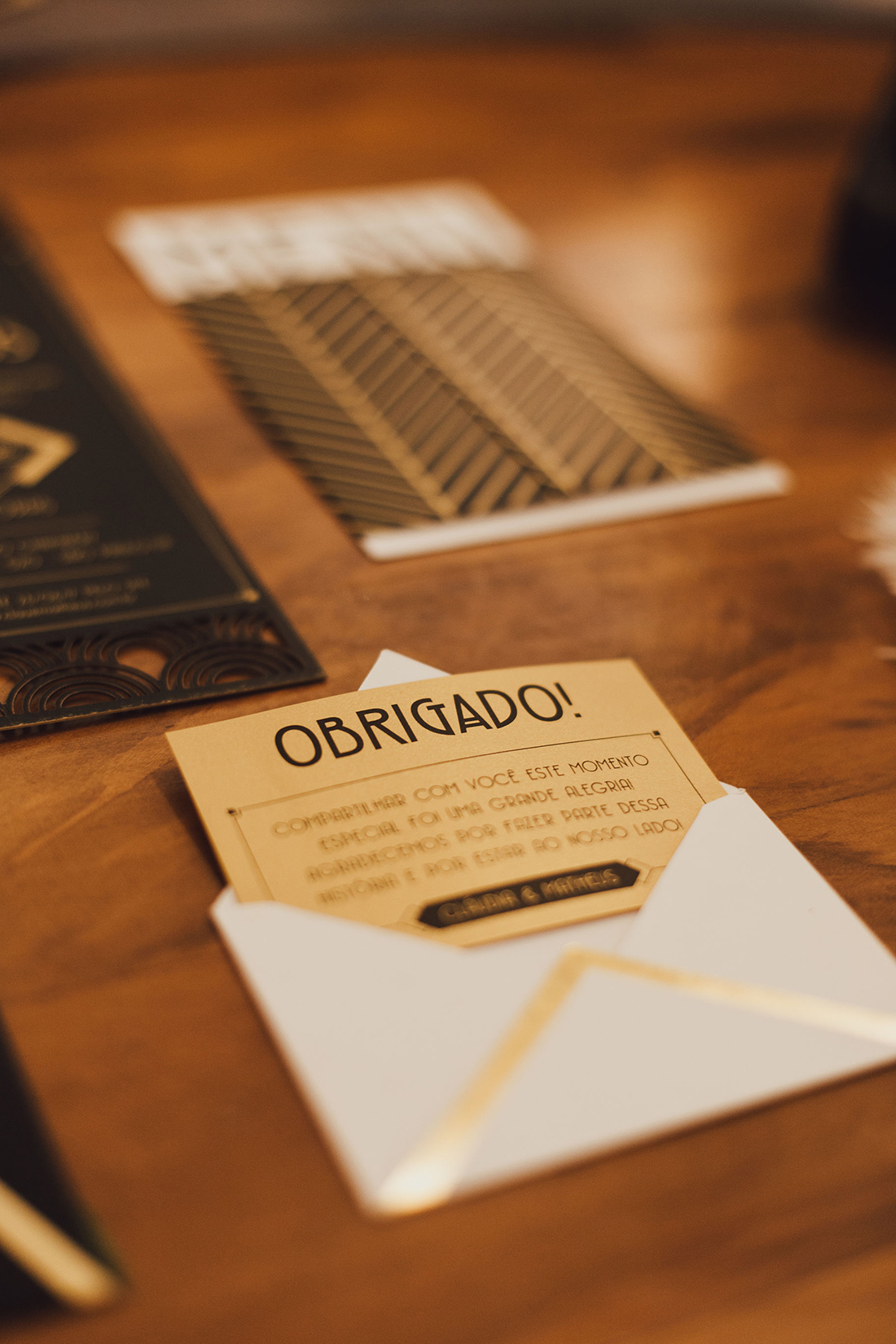 Do convite aos cartões de agradecimento, tudo combina e exala luxo na medida. Um trabalho de arrancar suspiros!