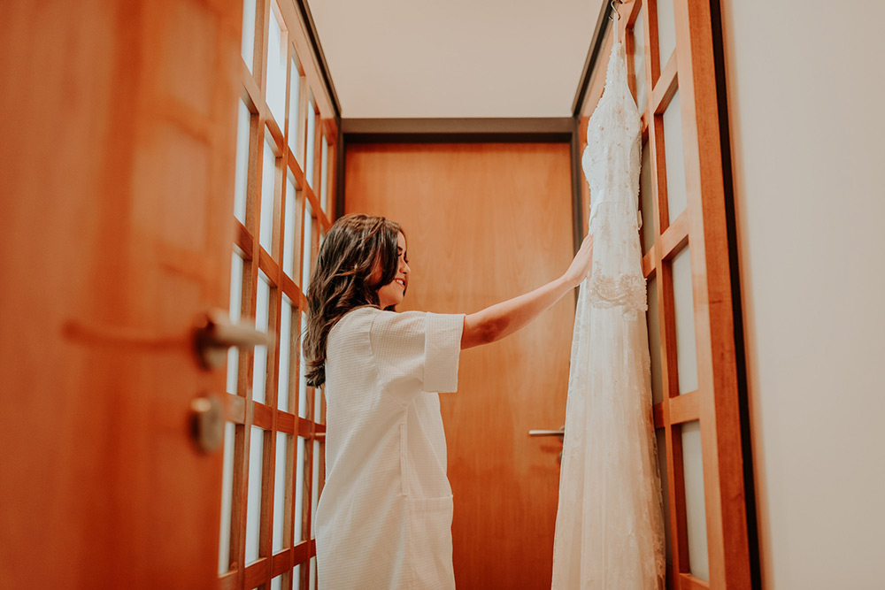 Meu noivo se arrumou no local da festa, em um quarto reservado para isso.