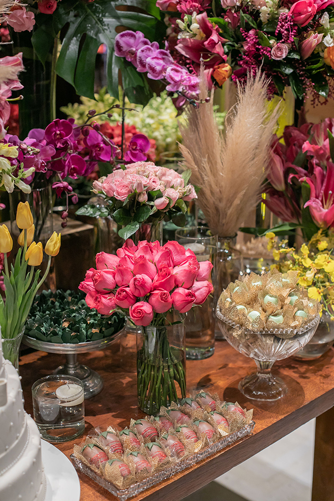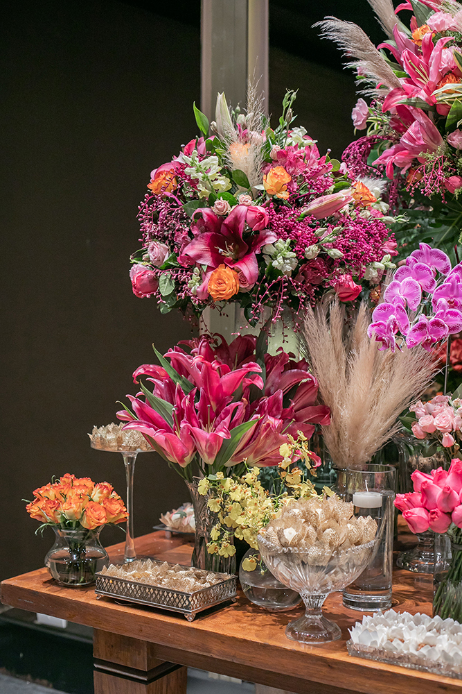 Enquanto isso, a festa no Espaço 011 ganhou decoração colorida, com tons vibrantes e uma mesa de doces fabulosa!