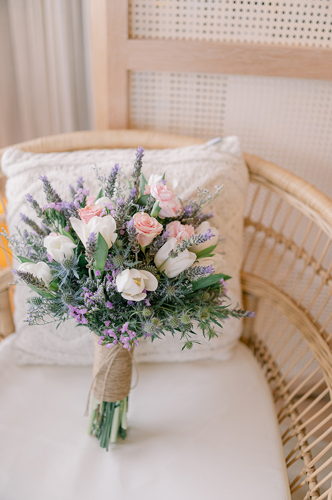 Sobre a decoração, a temática francesa sempre esteve presente desde o início da nossa relação. A inspiração foi a região de Provence, na França, pois sempre estudei francês. Eu e o Gustavo assistimos várias séries francesas juntos. A ideia era que a decoração lembrasse um jardim em Provence, com bastante lavanda, ervas, e flores em tons de rosa e lilás.