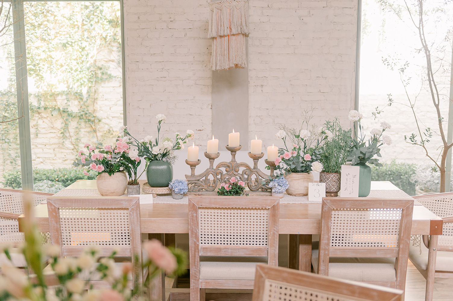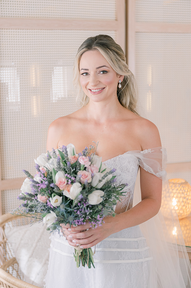Sobre a decoração, a temática francesa sempre esteve presente desde o início da nossa relação. A inspiração foi a região de Provence, na França, pois sempre estudei francês. Eu e o Gustavo assistimos várias séries francesas juntos. A ideia era que a decoração lembrasse um jardim em Provence, com bastante lavanda, ervas, e flores em tons de rosa e lilás.