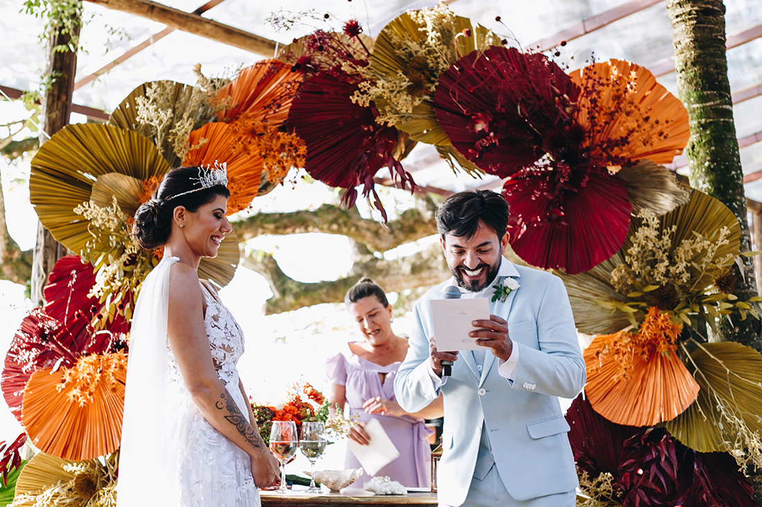 Um casamento com vista para o mar que celebra o clima paradisíaco de Ilhabela, mas destaca ainda mais a personalidade vibrante do casal.