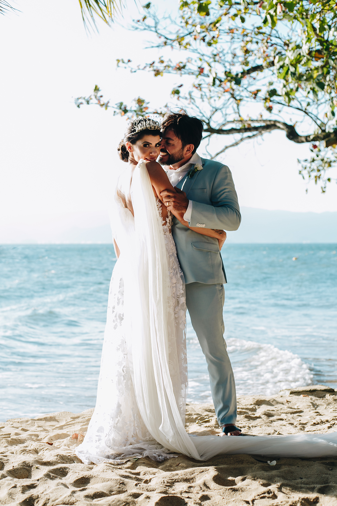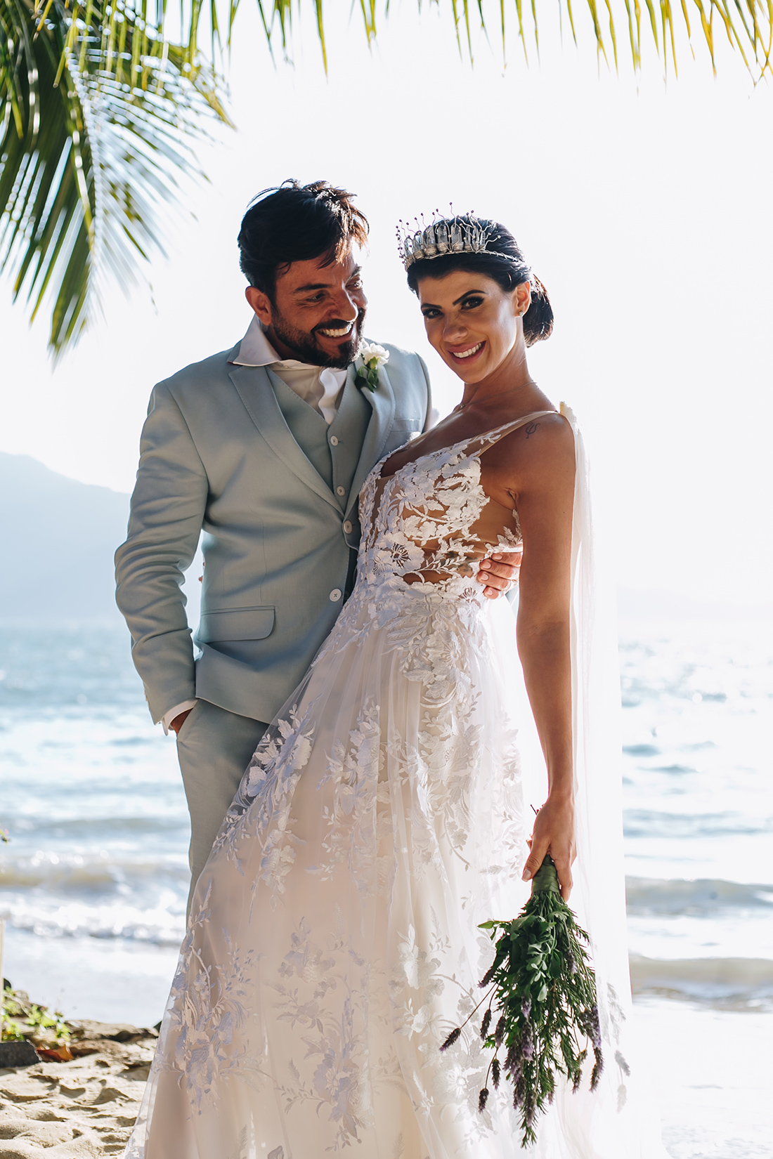 Cercados por toda a energia e cenários únicos de Ilhabela, os noivos celebraram em grande estilo, o que rendeu fotos lindas assinadas pela Sereiamor.