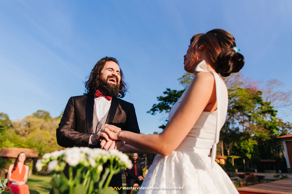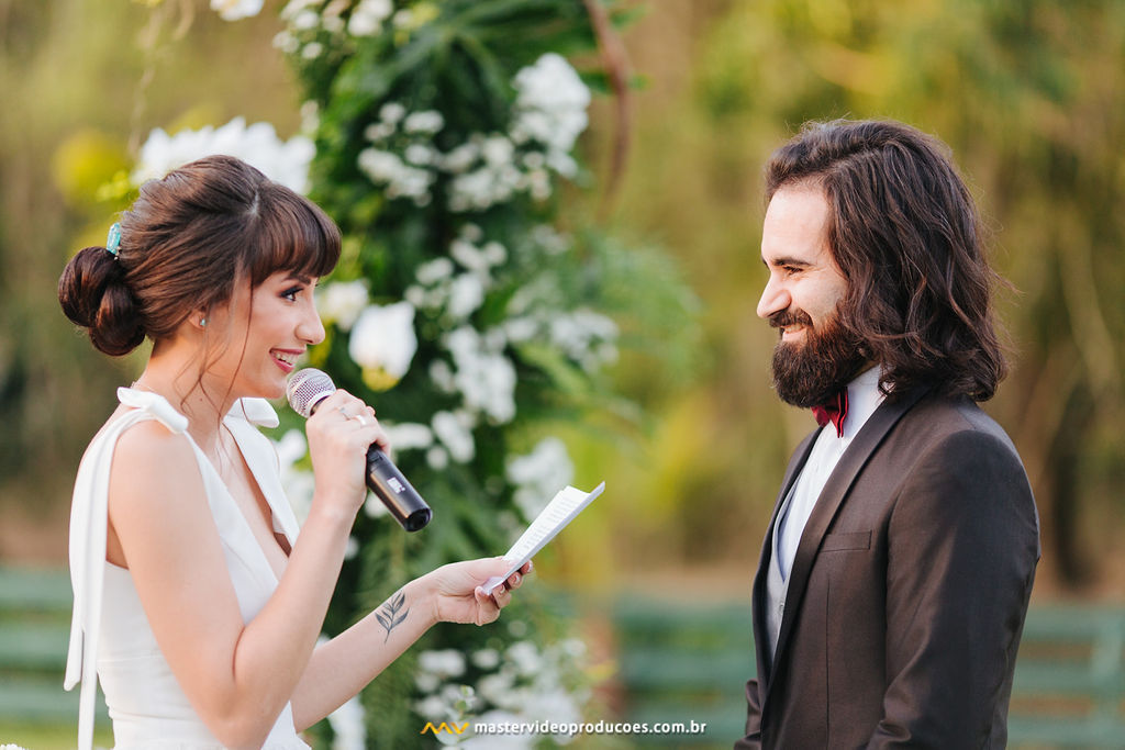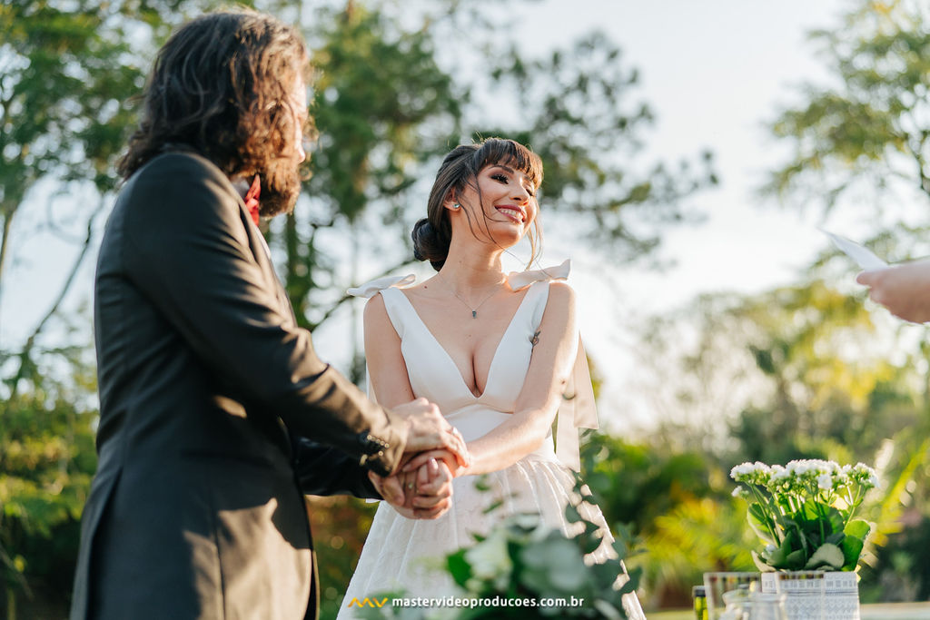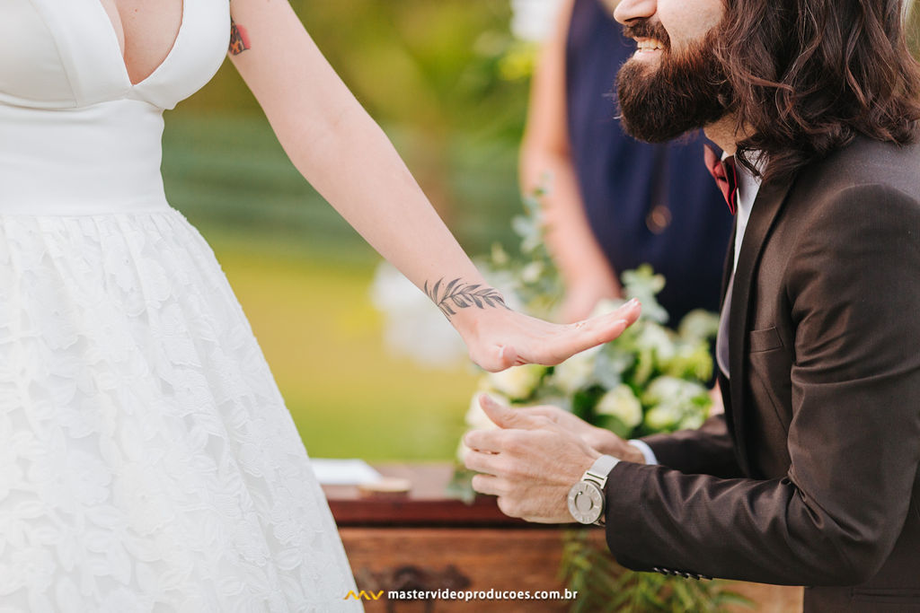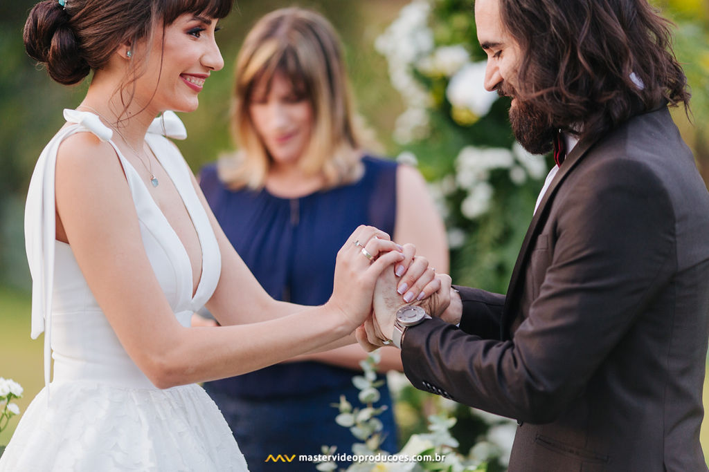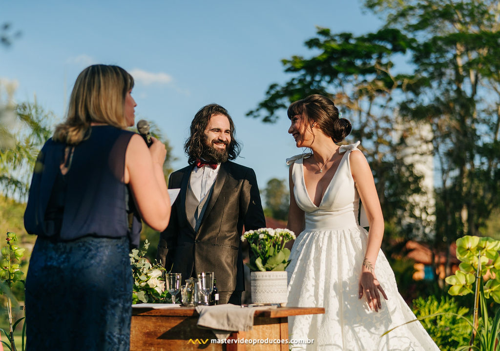 A organização foi tranquila para nós. Celebrante, vestido, buquê e beleza da noiva não nos preocupou nem um pouco. Decoração, filmagem, o som que embalou todo o evento, exatamente tudo que se precisávamos para a mágica acontecer, estava lá. Prontinho! Só tivemos que ser nós mesmos.