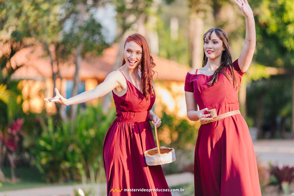 Local: Fazenda Dona Inês • Decoração: Flor Brasileira Assessoria: Par Perfeito Cerimonial • Celebrante: Adriana Santos • DJ: Vitamina Som • Foto e filme: Master Vídeo • Beleza: Jeh Oliver e Fernanda Muniz • Vestido de noiva: Atelier Oui • Traje do noivo: Splendore Noivas e Festas • Acessório: Casa Grinaldi