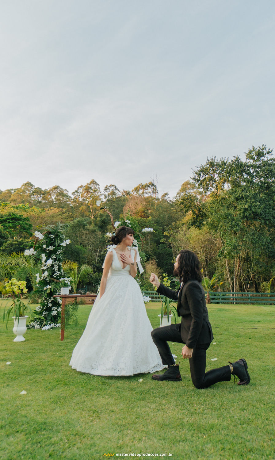 Ele simplesmente acontece, numa tarde de domingo em uma fazenda encantada, dançando na grama, quebrando taças, com músicas da Disney e chuva de pétalas brancas.