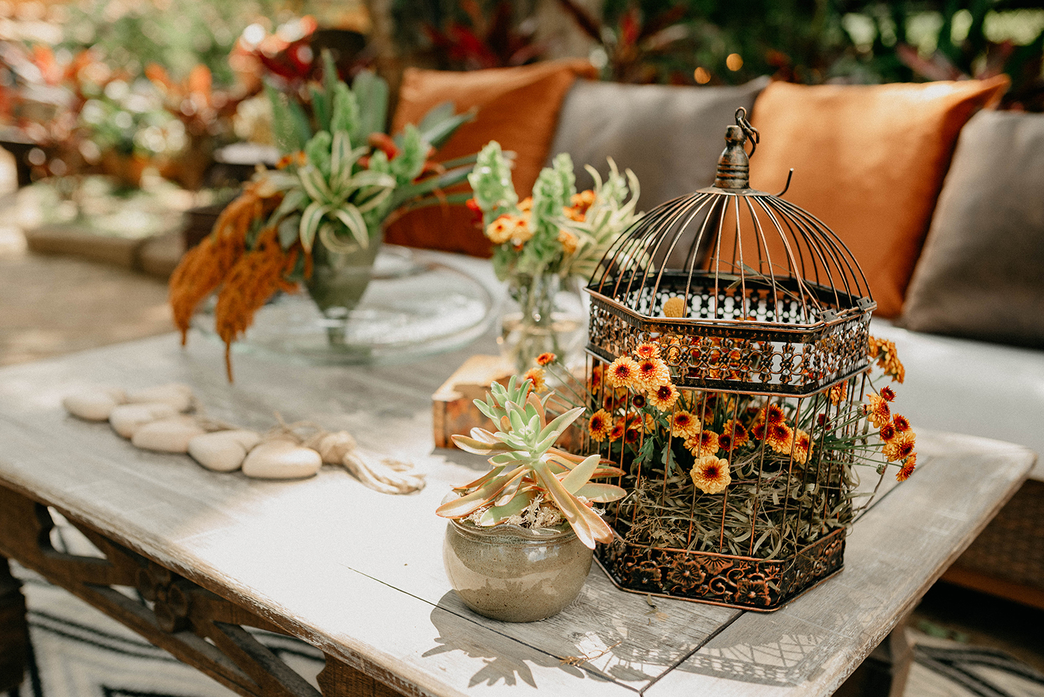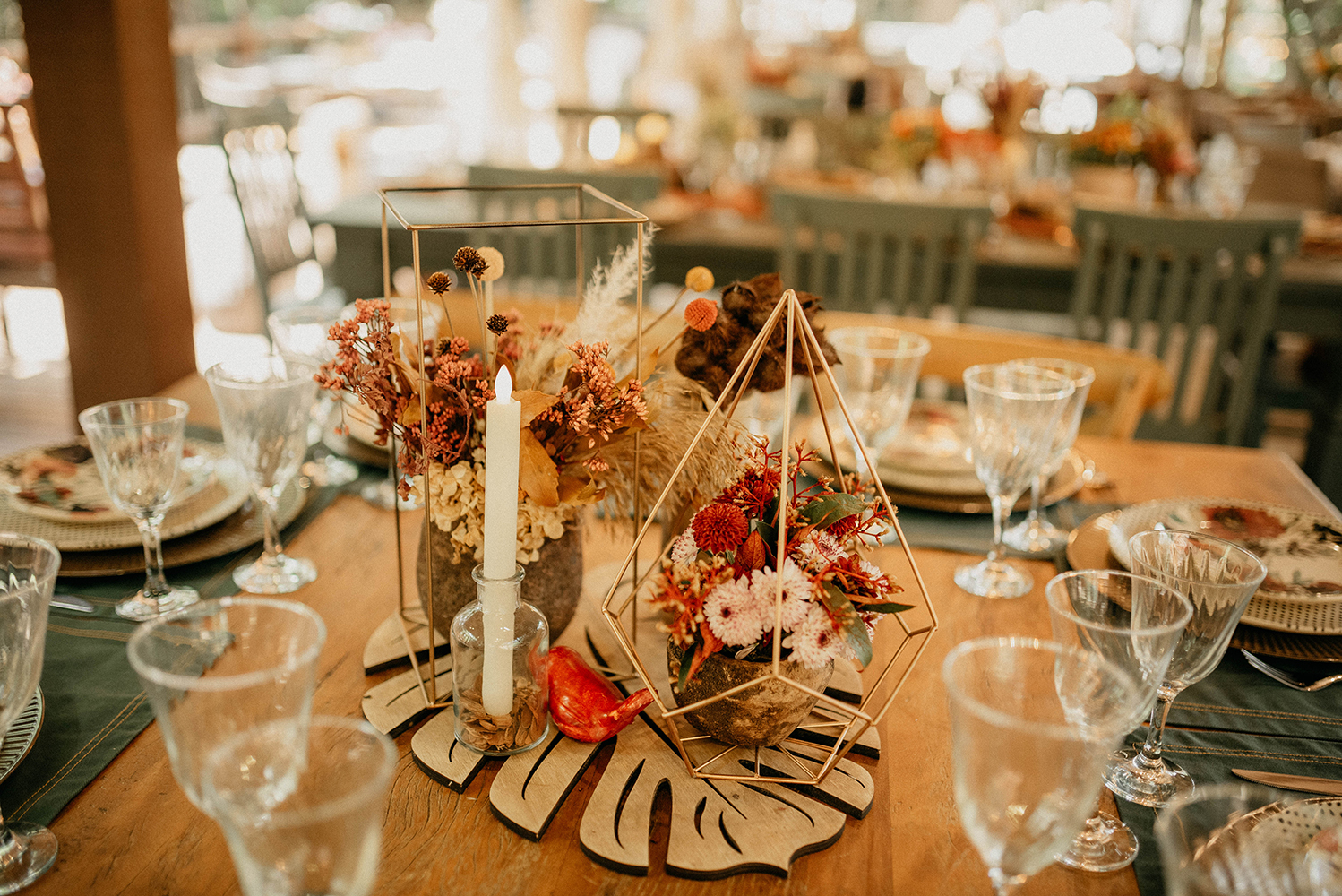 “A decoração do casamento foi afetiva, trazendo o calor dos tons terrosos. Além disso, detalhes pessoais fizeram com que tudo tivesse a nossa cara.