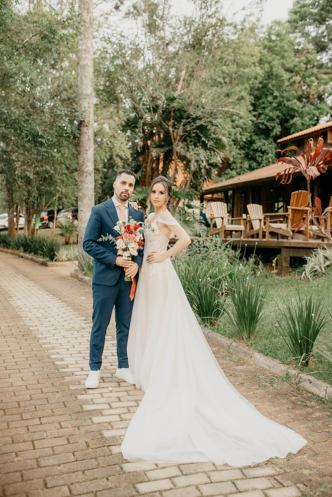 Espaço e decoração: Rancho Santa Maria • Beleza da noiva: Grazi Almeida • Assessoria: Feito pra Você • Gastronomia: Infinity Gastronomia • Bar: Bar e Coquetel • Música: Samuel Morales • Fotos: Victor Silverio Fotografia • Vestido de noiva: Fasô