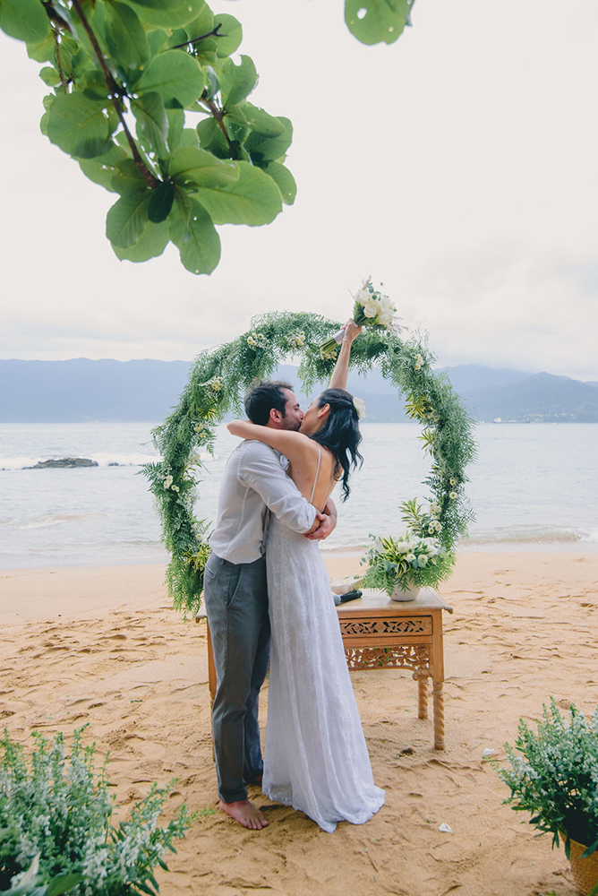 Casamento pé na areia: Jaqueline e Rodrigo