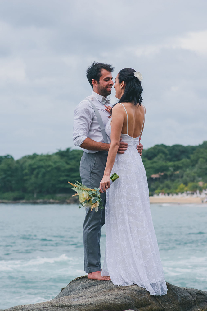 Além de inspirador, o grande dia da Jaqueline e do Rodrigo também foi descontraído e apaixonado, do tipo que a gente tem vontade de tirar os sapatos e molhar os pés no mar antes de seguir para a festa.