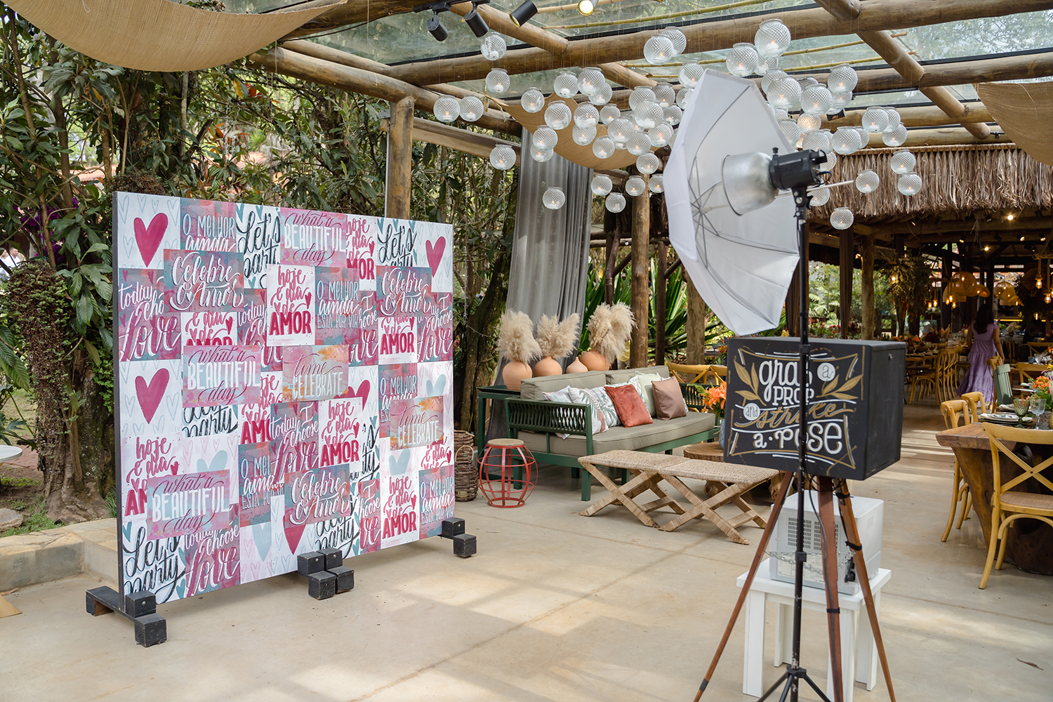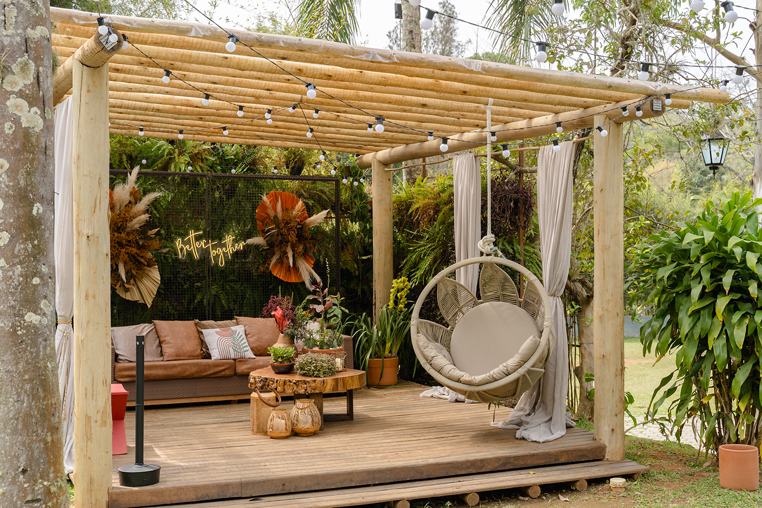Da mesma forma, o espaço promove o match perfeito entre o rústico e o sofisticado. Tudo isso completado pelos cenários verdes.
