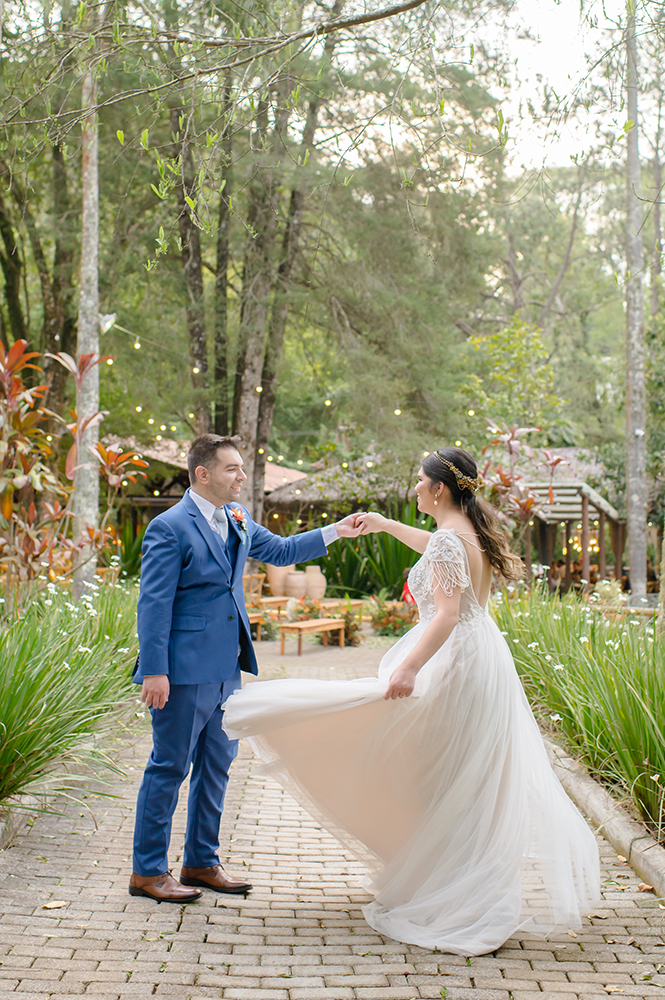 O casamento folk no Rancho Santa Maria foi cuidadosamente planejado pelos dois. Michelle, aliás, tem um vínculo todo especial com o Noiva Ansiosa, já que fez parte do nosso grupo no WhatsApp ao longo dos preparativos.