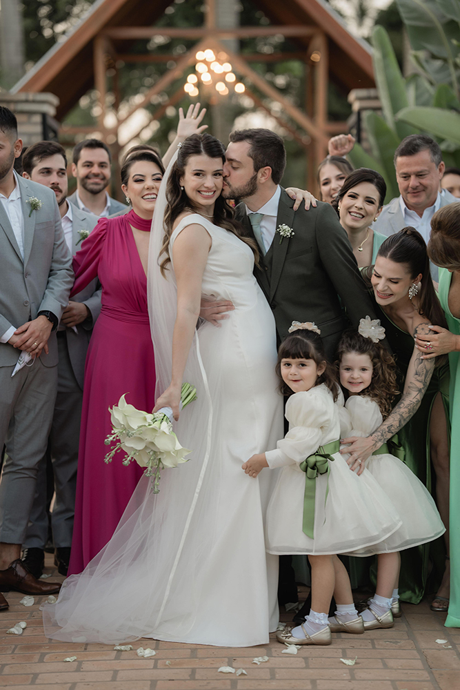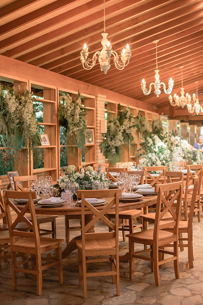 O casamento no campo foi exatamente como sonharam, incluindo decoração em verde e branco e um ótimo assessor.