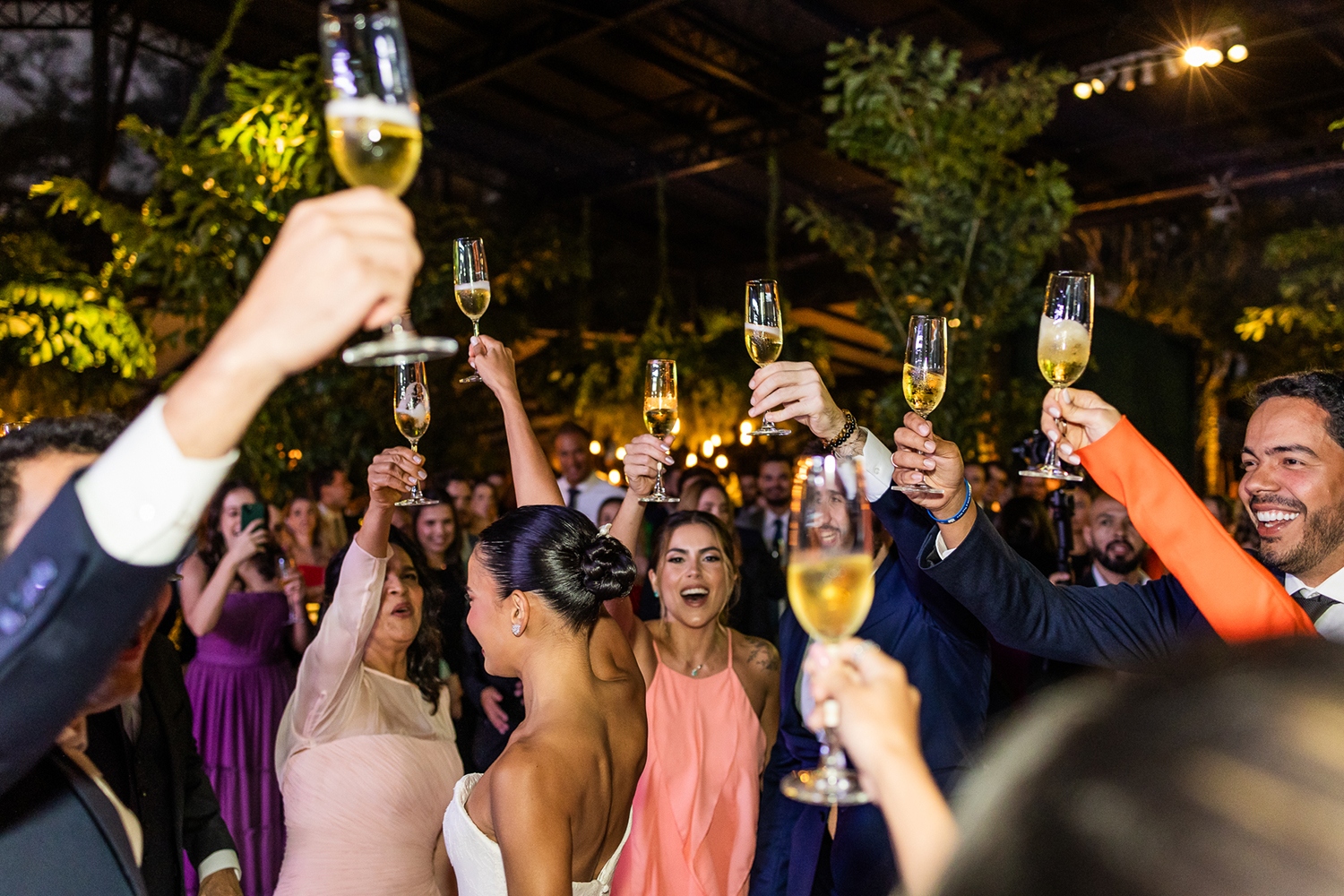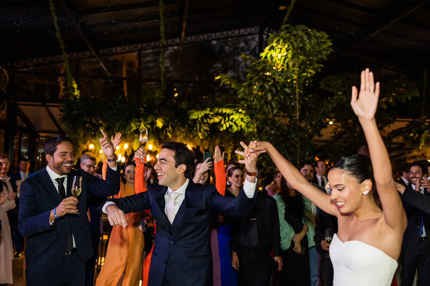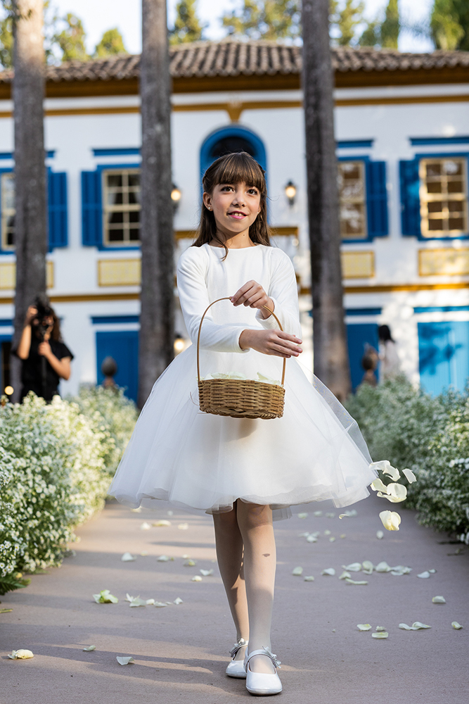 Após a cerimônia, o look foi transformado em tomara que caia, garantindo ainda mais conforto para curtir a festa.
