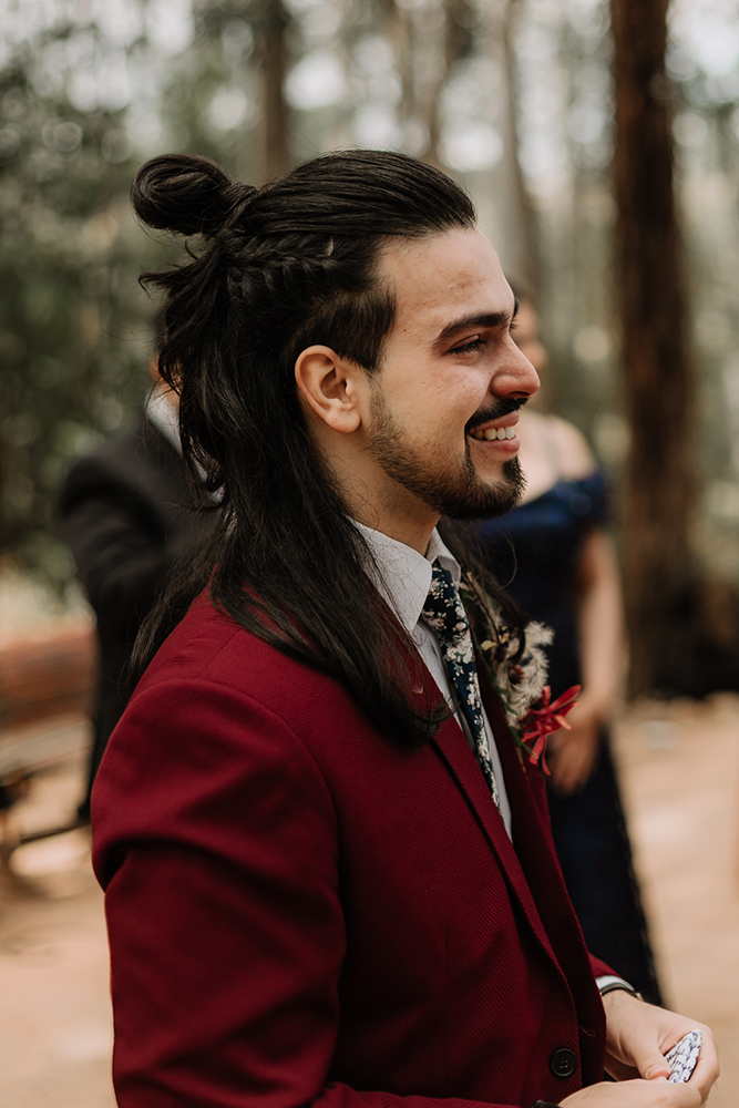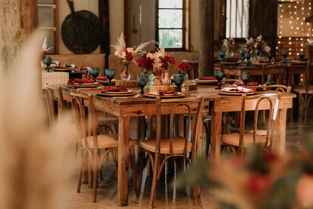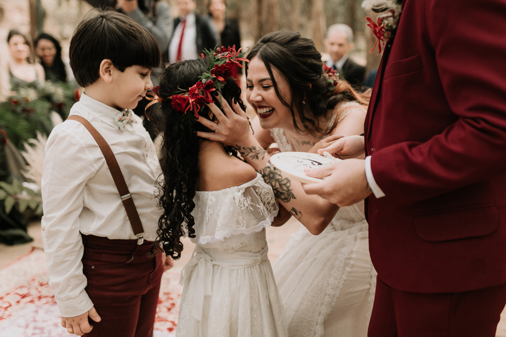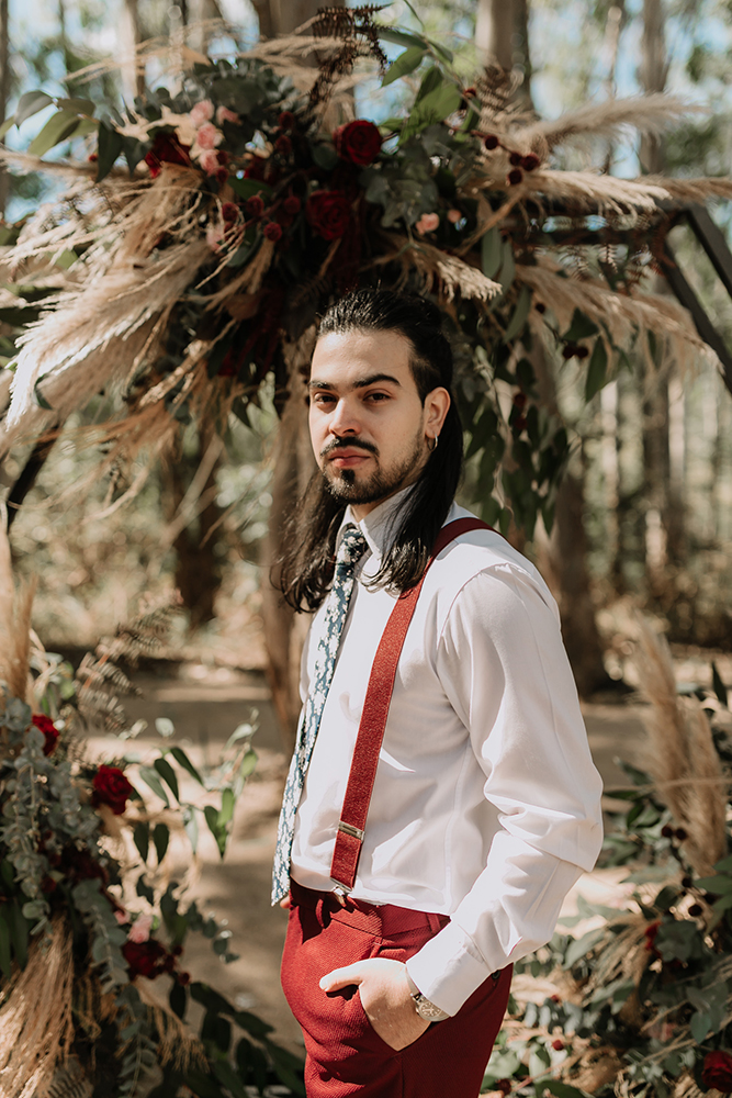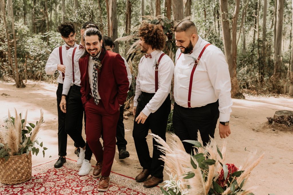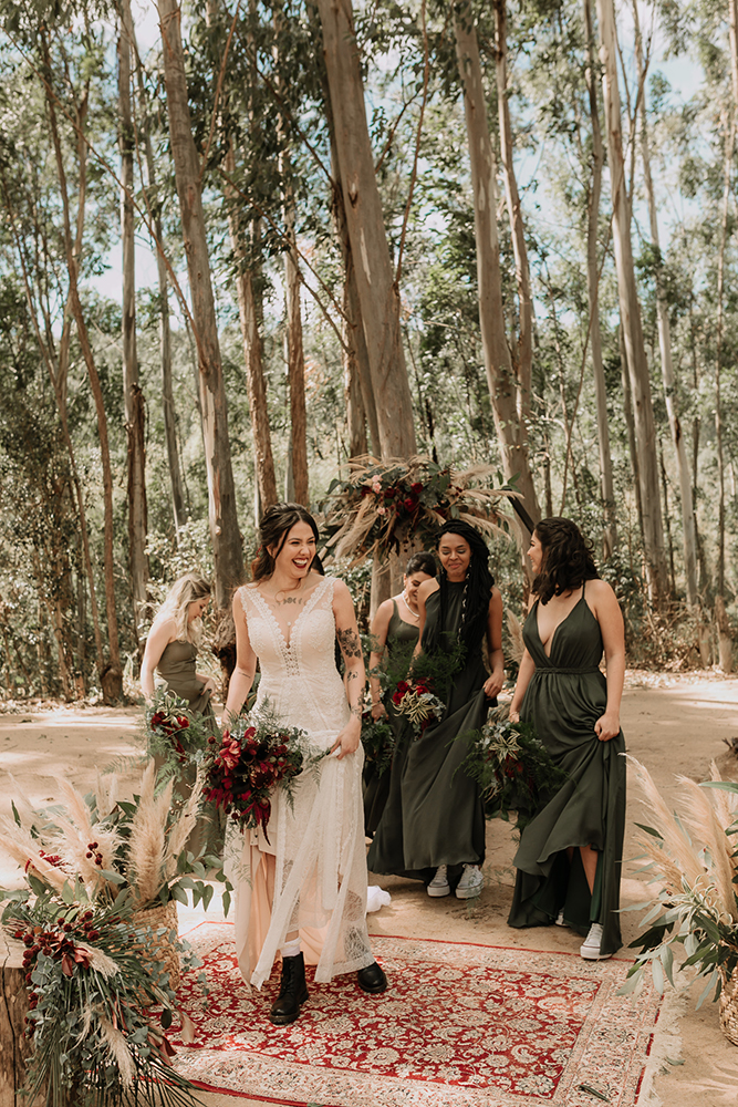 O casamento na floresta, assim como sonhado pelos noivos, aconteceu com muita personalidade, capim dos pampas, madeira e toques de marsala.