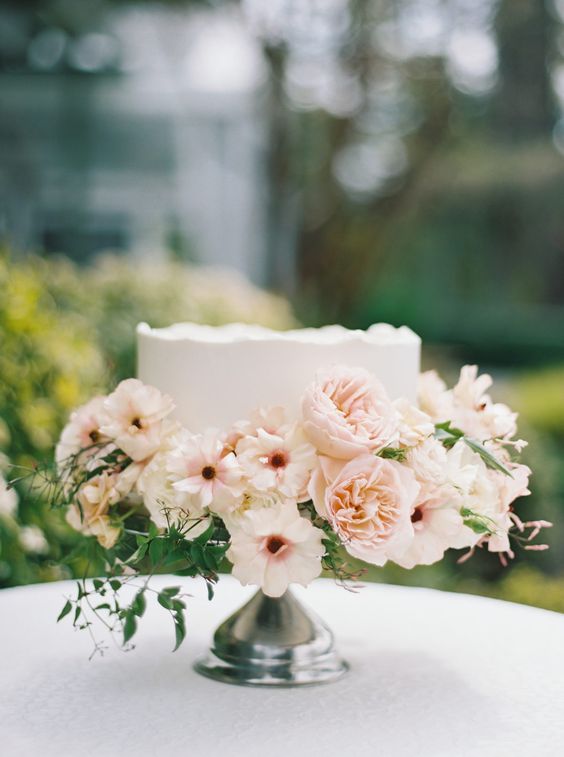 Já que as flores são parte fundamental da decoração, vale incluí-las em tudo. Inclusive no bolo!