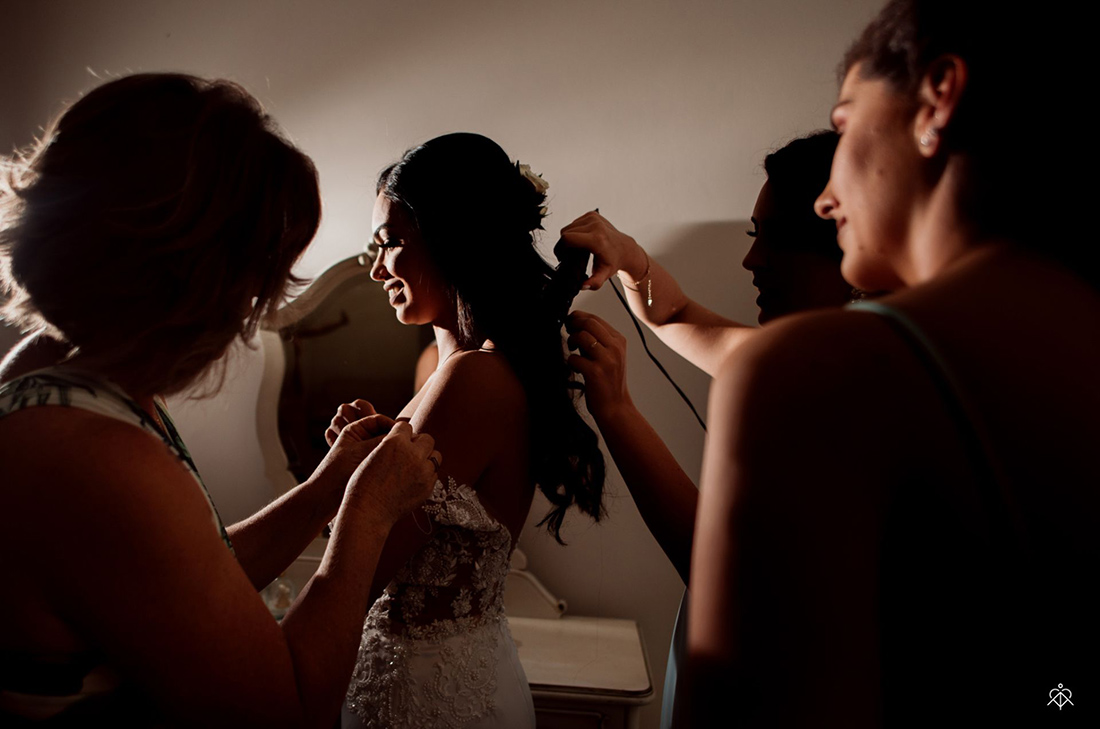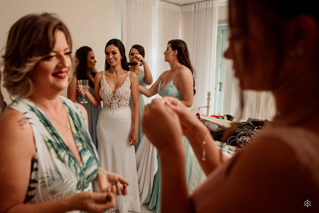 Nossos pais e padrinhos passaram a noite anterior conosco, pudemos aproveitar o espaço durante os preparativos e foi tudo perfeito!”.