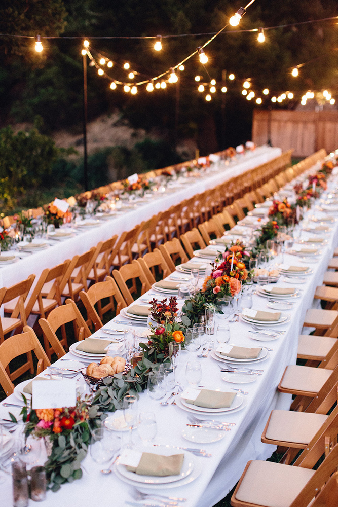 Diferentemente do que acontece ao usar luzes brancas, que tendem a não combinar com o casamento no campo.