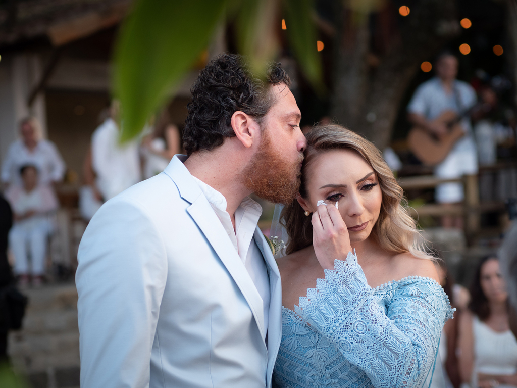 “O que falar das cores? Novamente não queríamos ser tendenciosos para uma ou outra religião ou tradição. Os convidados e fornecedores vestiram branco para trazer leveza e paz de espírito, pois o branco tem esse poder.