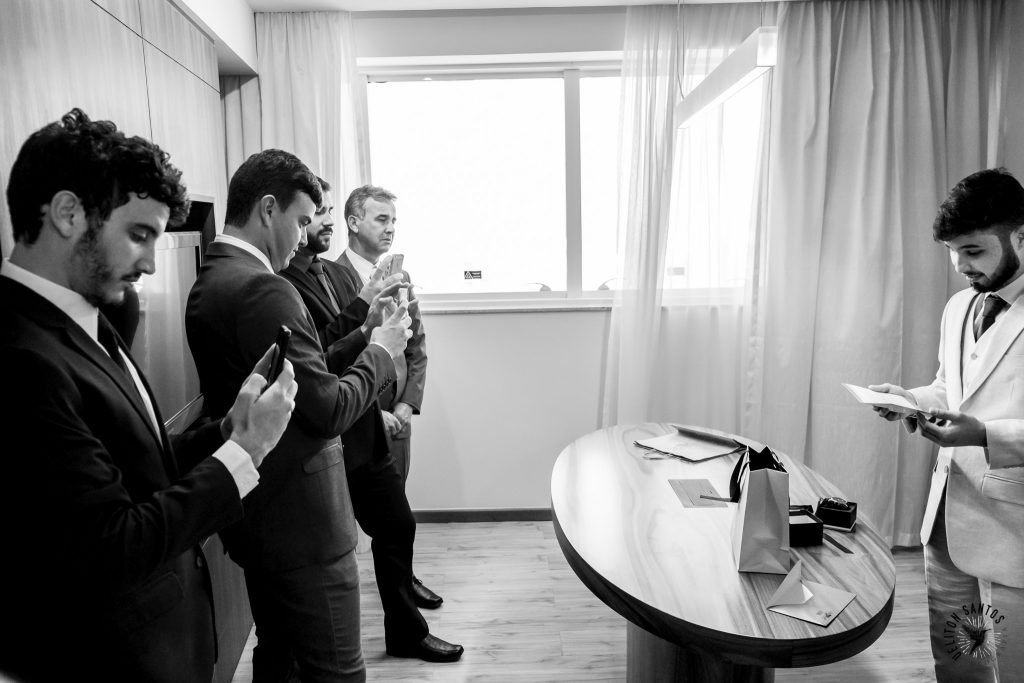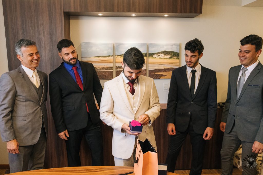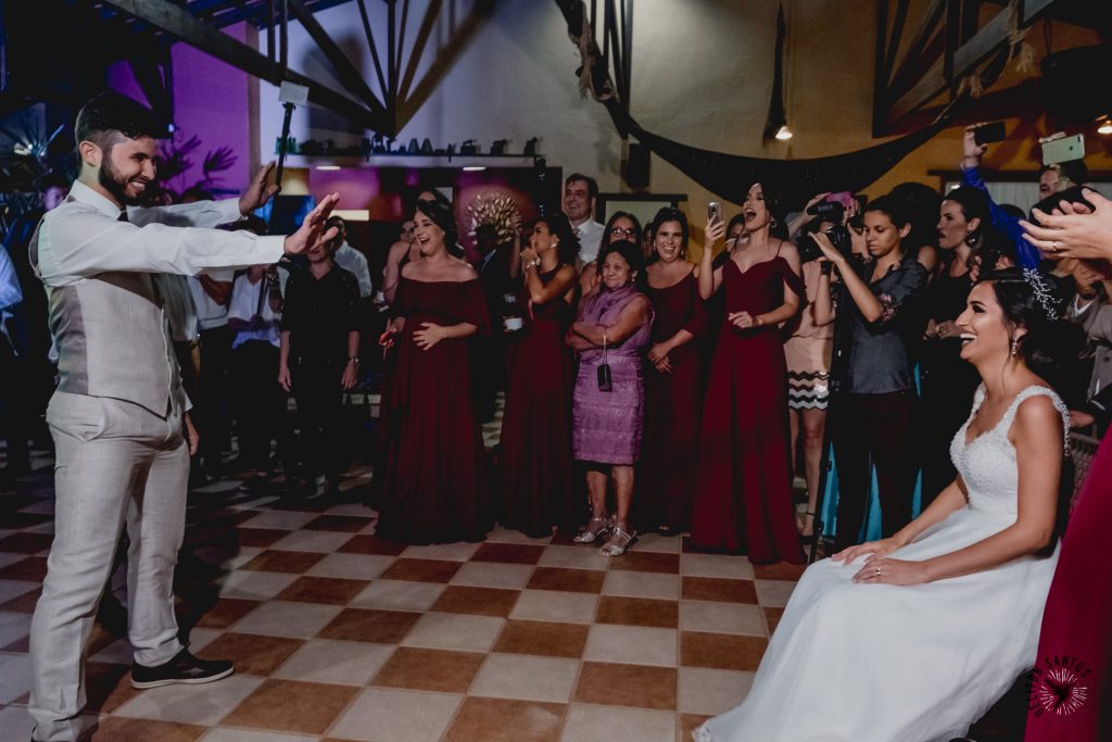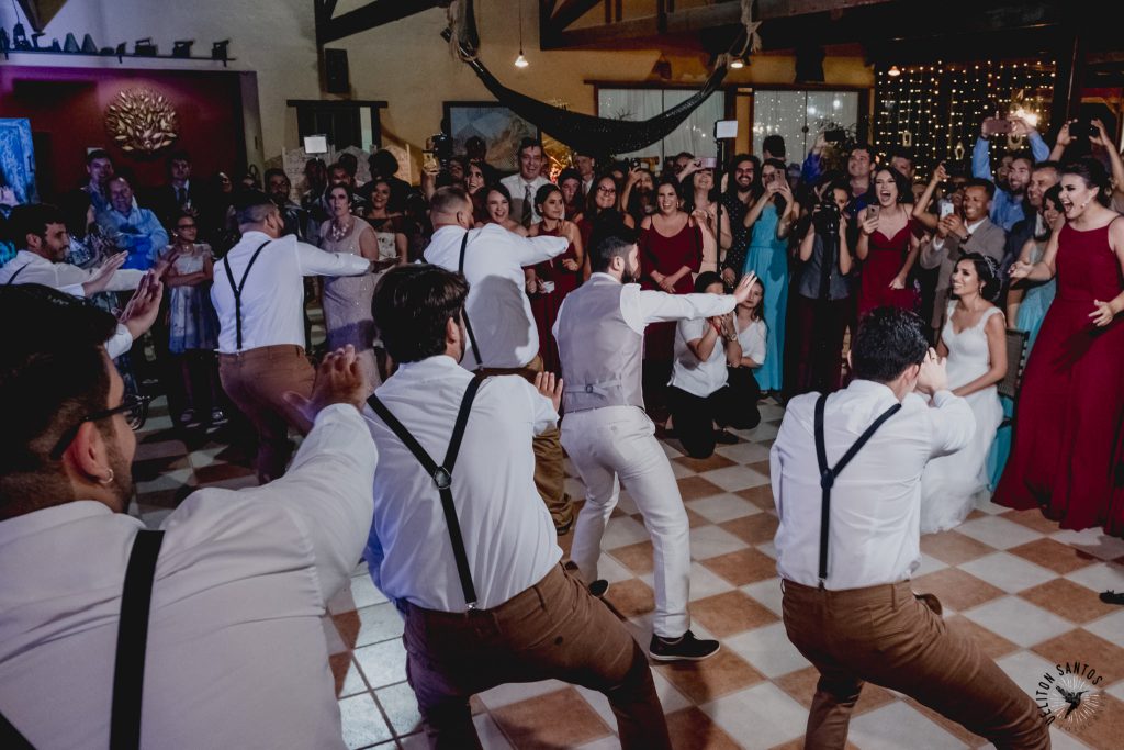 Outro ponto alto foi que combinamos que não faríamos a tradicional dança dos noivos, mas quando fomos agradecer e abrir a pista, Douglas junto com os padrinhos fizeram uma coreografia.
