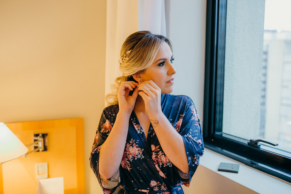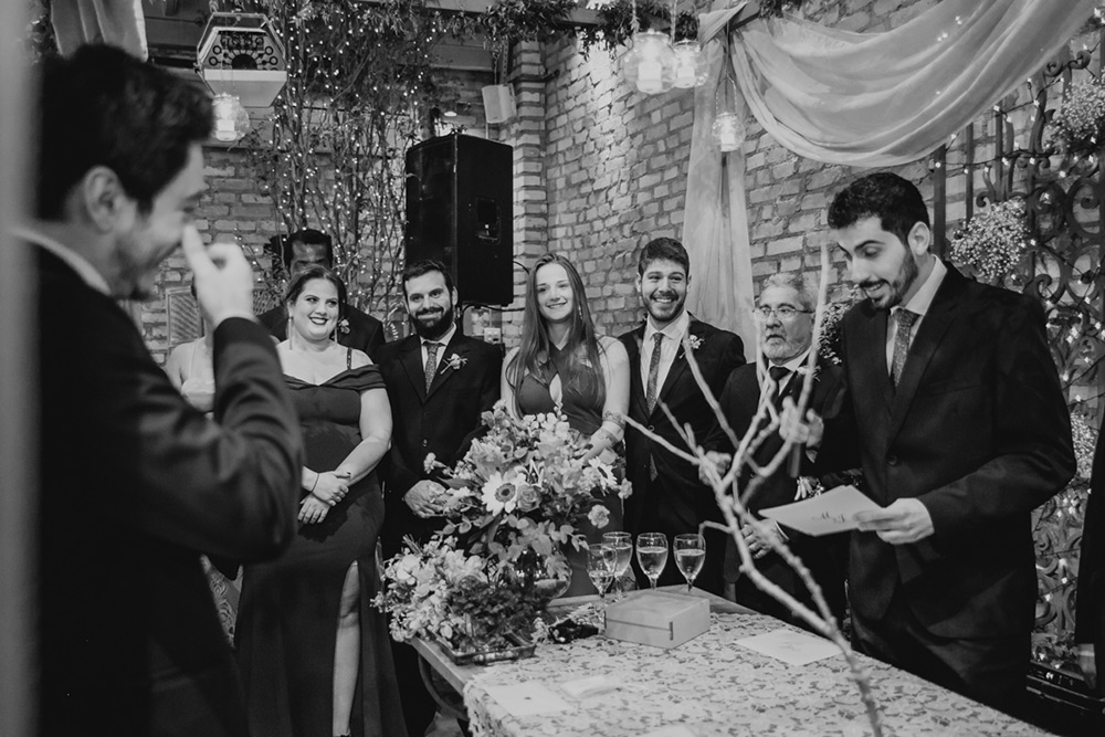 Decidimos oficializar o casamento com uma cerimônia feita por um amigo do noivo, bem íntima, para nossos familiares e grandes amigos.