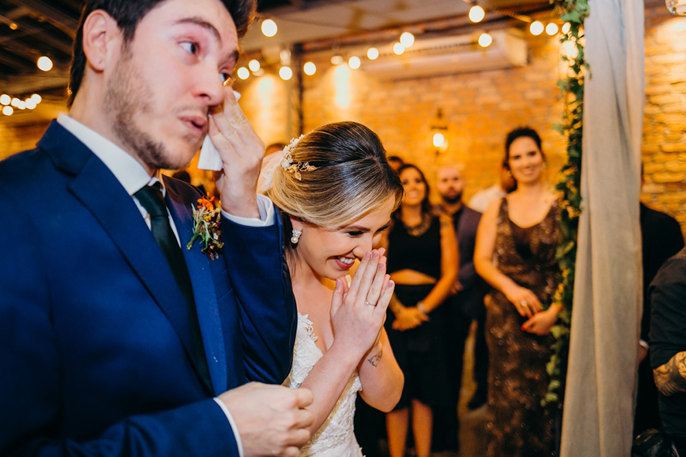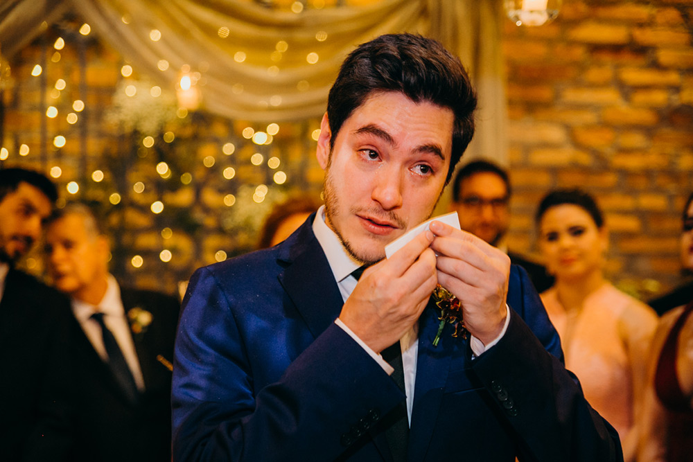 O João ficou tão emocionado durante a entrada da Mari que não conseguiu conter as lágrimas e o sorriso, fazendo a gente chorar junto.