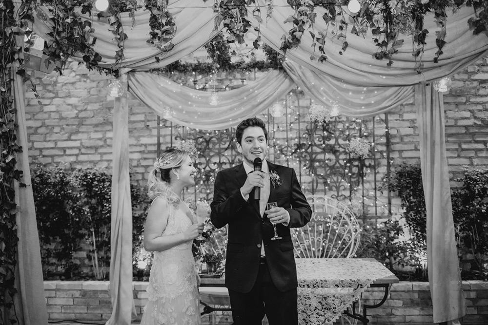 No fim de 2017 começamos a morar juntos e o pedido de noivado aconteceu em 31/12/2017. Não tínhamos ideia de nos casarmos tão rápido, à princípio fomos por curiosidade visitar a Casa Quintal e nos apaixonamos de cara!