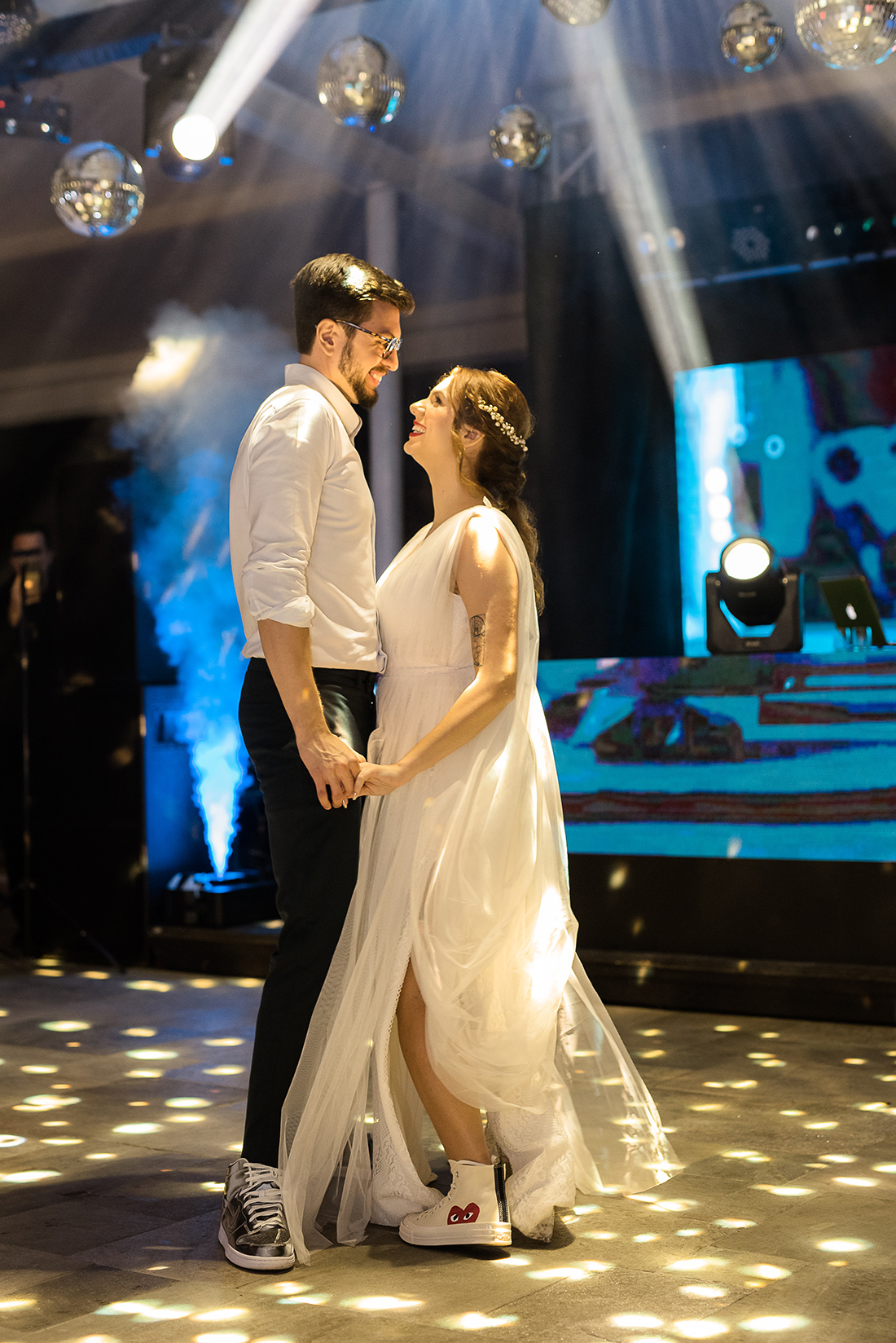– Eu e meu marido nos casamos de tênis, fazendo questão de deixar nossa personalidade aparecer nesse dia, sem seguir nenhum protocolo pré estabelecido pela sociedade.