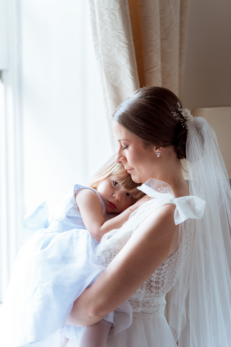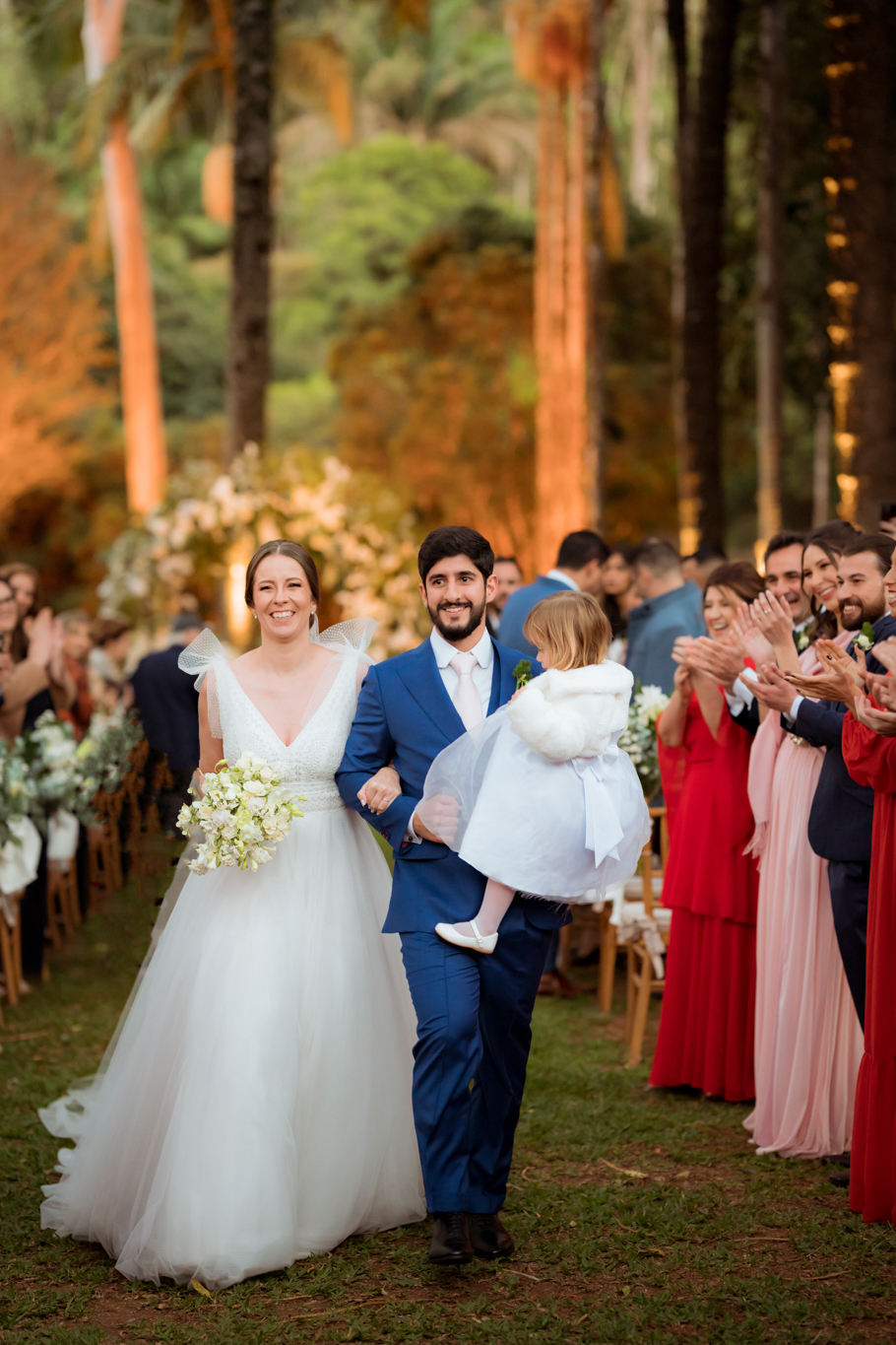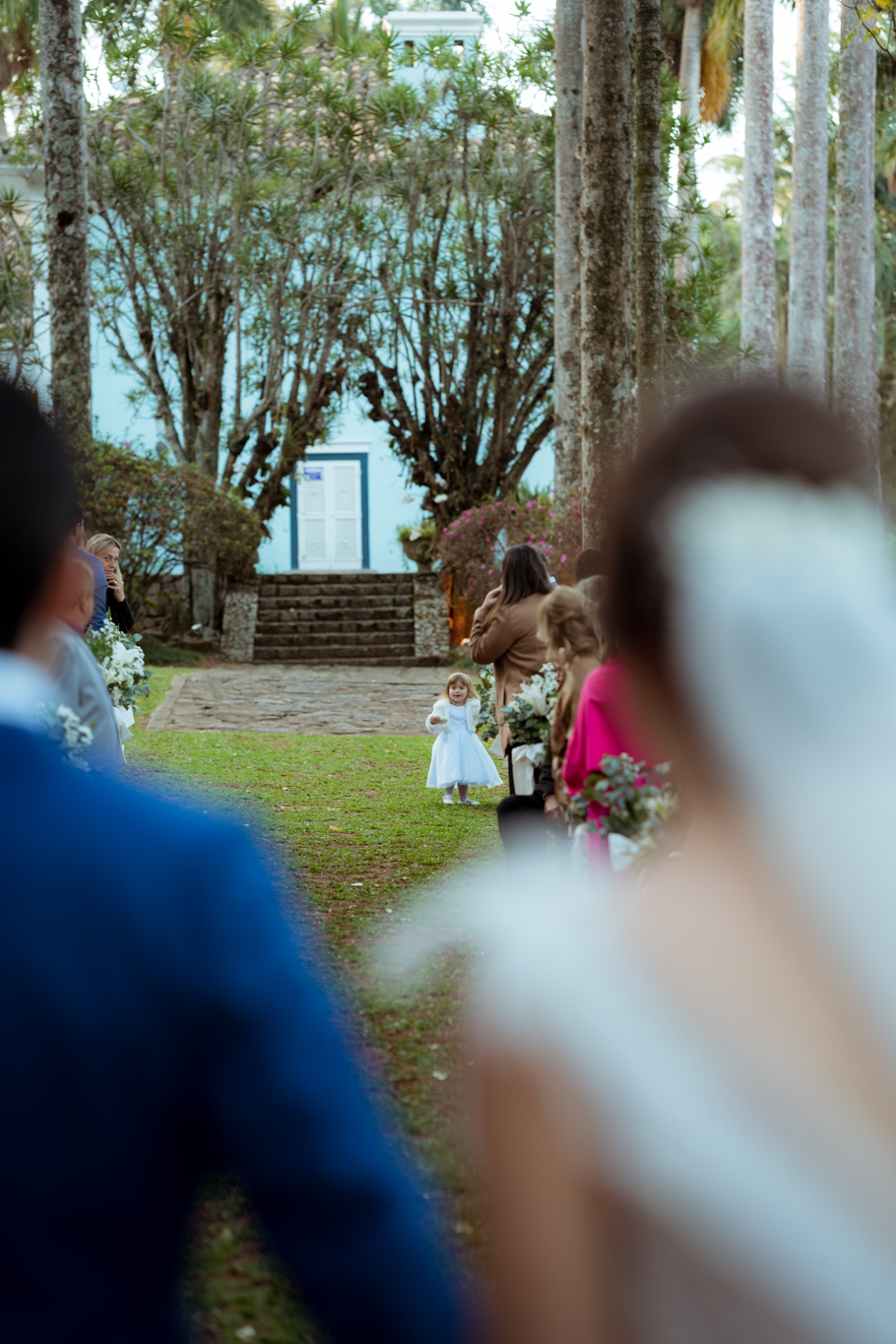 O ponto alto da cerimônia foi, sem dúvidas, a entrada da nossa filha como daminha. Ela que não quis arrumar os cabelos, saiu correndo pela nave e tirou risadas de todos. Como gosto de reforçar, ela é o elo entre nós dois, quem fez a gente chegar onde estamos agora.