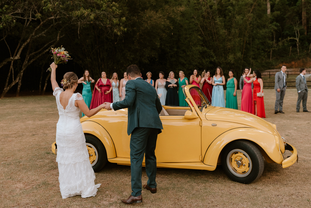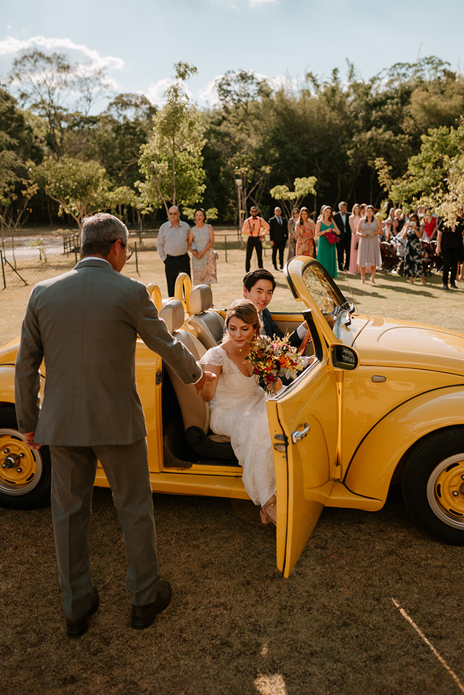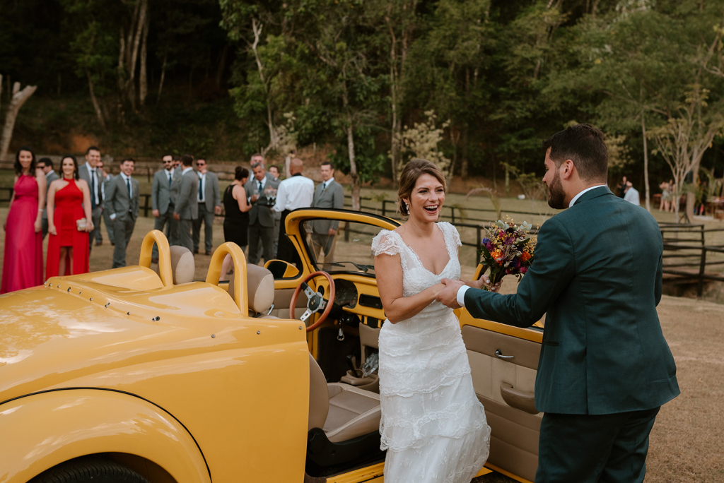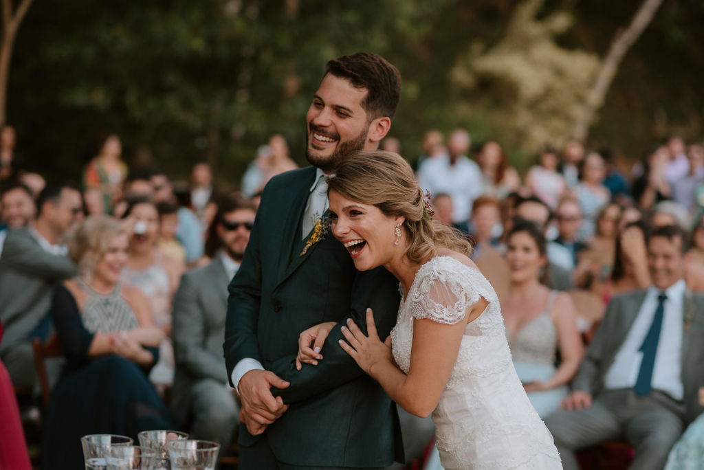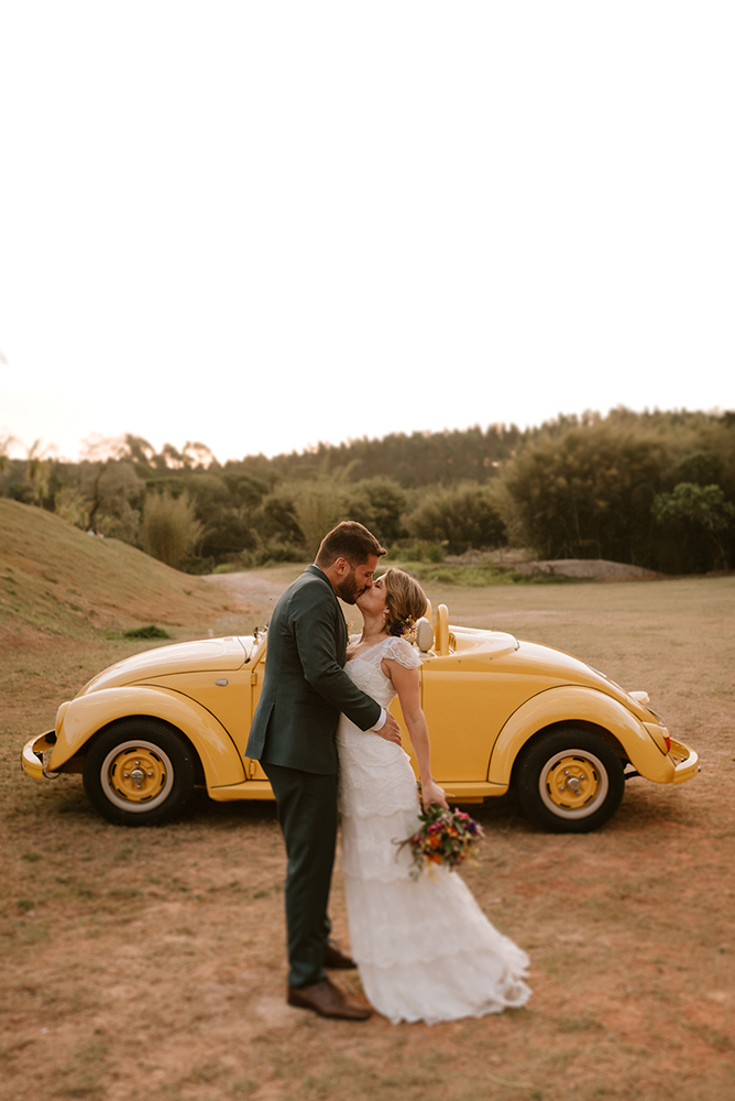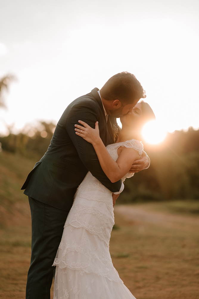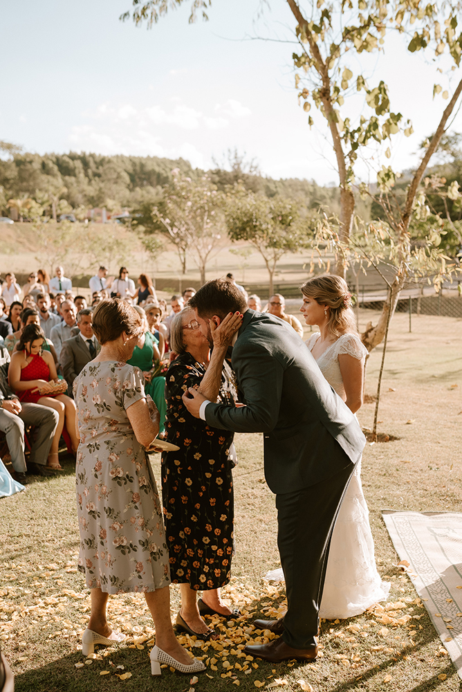 O enlace no campo teve a carinha dos noivos. Antes de mais nada, um casamento construído com parceira, respeito e amor.