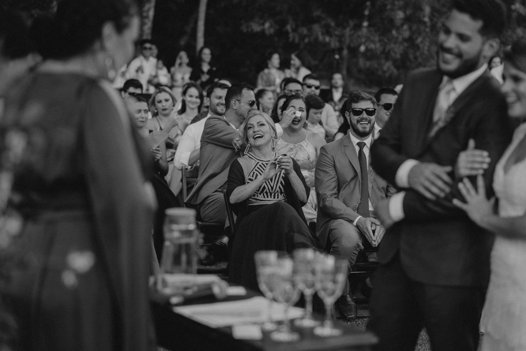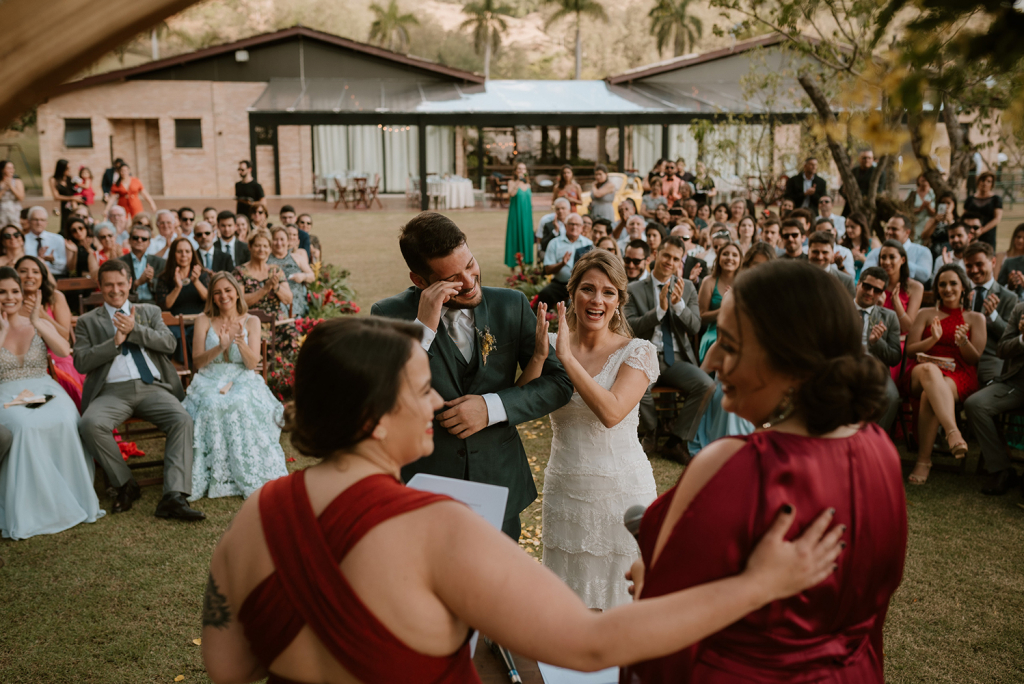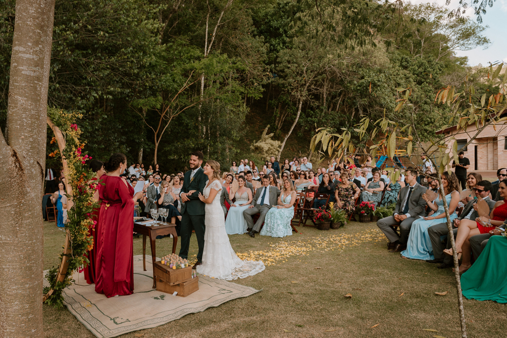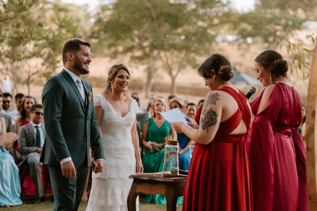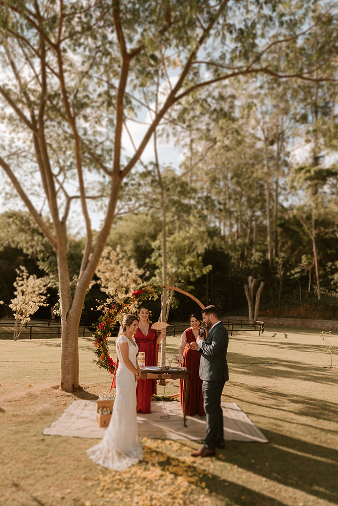 As celebrantes foram duas amigas queridas nossas. Também indico muito que casais que querem uma cerimônia mais pessoal escolham amigos próximos para celebrar!”.