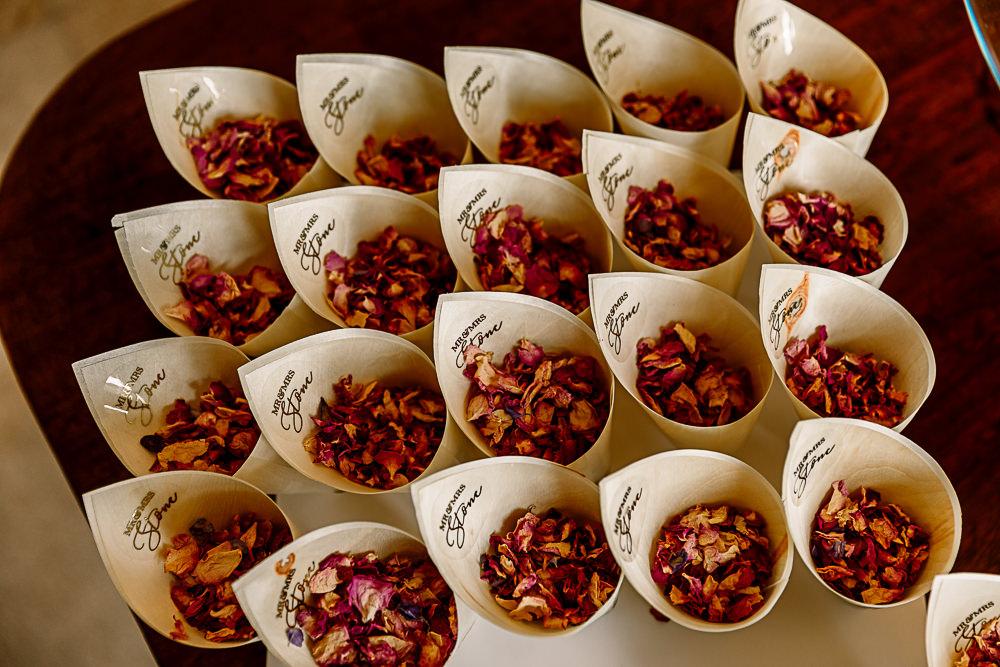 Inteiras ou recortadas nos mais diversos formatos, as folhas são uma ótima opção para jogar na saída da cerimônia. Ou seja, não tem item mais ecologicamente correto!
