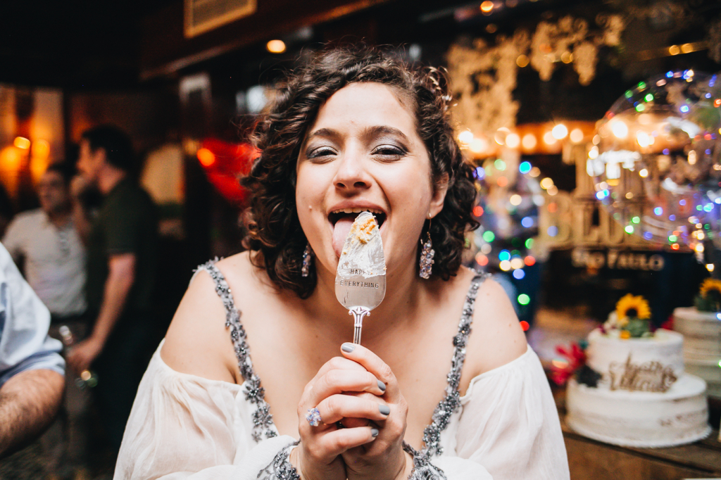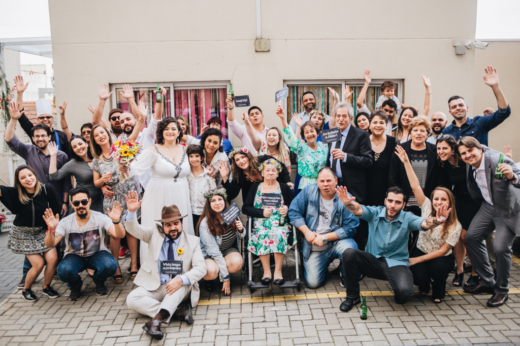 Então, decidimos celebrar o nosso casamento de alguma forma, mas a grana tava curta para fazer uma festa grande para a família toda, que é imensa”.