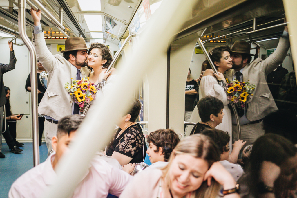 Os registros fotográficos são tão bonitos, alegres e divertidos quanto a Ágatha. Do making of até a cerimônia no salão do prédio, passando pela inusitada viagem de metrô, cada clique é uma explosão de alegria!