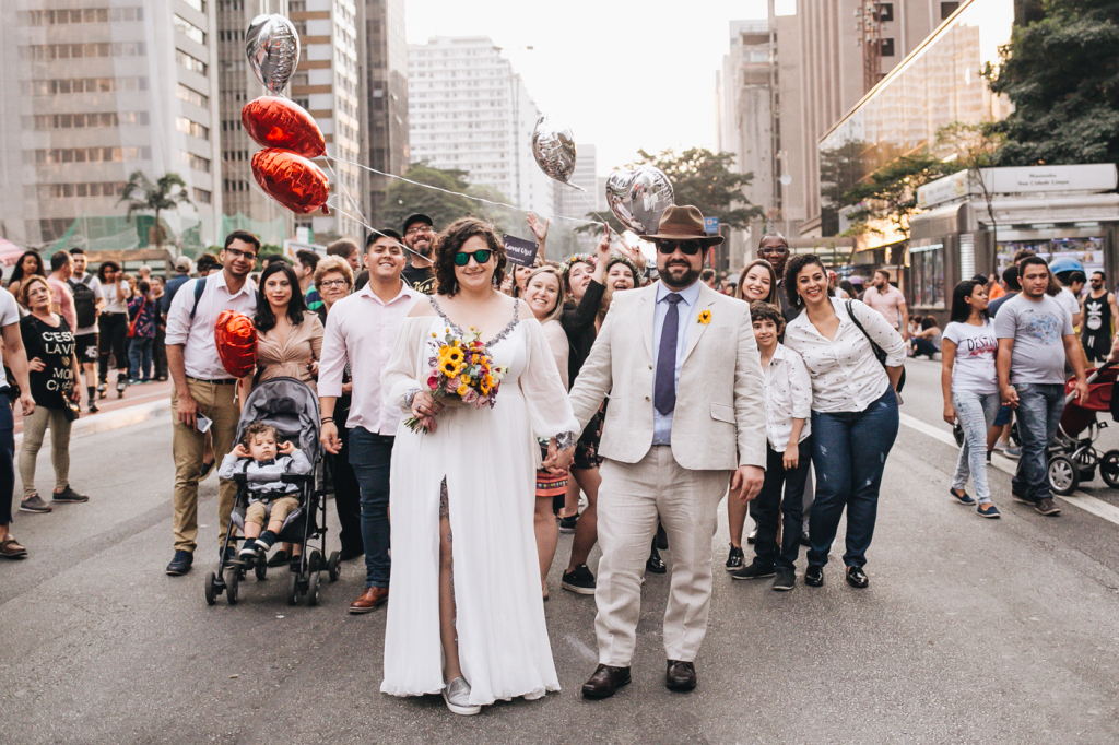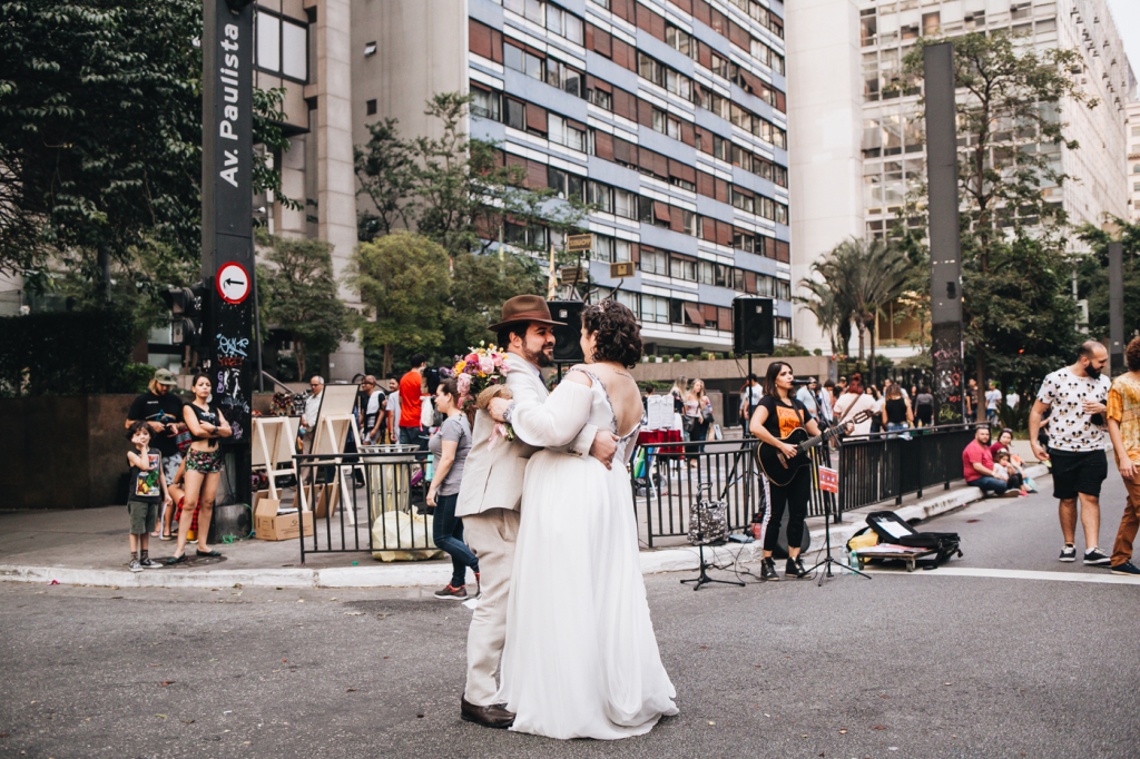 Assessoria: ReF Assessoria • Fotos: Canvas Ateliê • Doces: Hey Sweet • Vestido: Julia Pak Atelier • Beleza: Lino Cabeleireiro • Traje do noivo: For Jack • Gravata: O Francês Gravataria • Acessórios: Mari Peres • Buffet: Pra que Cozinhar • Música: Trio Bagaço e Thiago Woody • Decoração: O Amor e a Flor • Porta alianças: Andrea Lima Bordados • Bolo: Mih Weller Cakes • Bem casados: Ana Cristina • Local: Salão do prédio, metrô, Av. Paulista e The Blue Pub