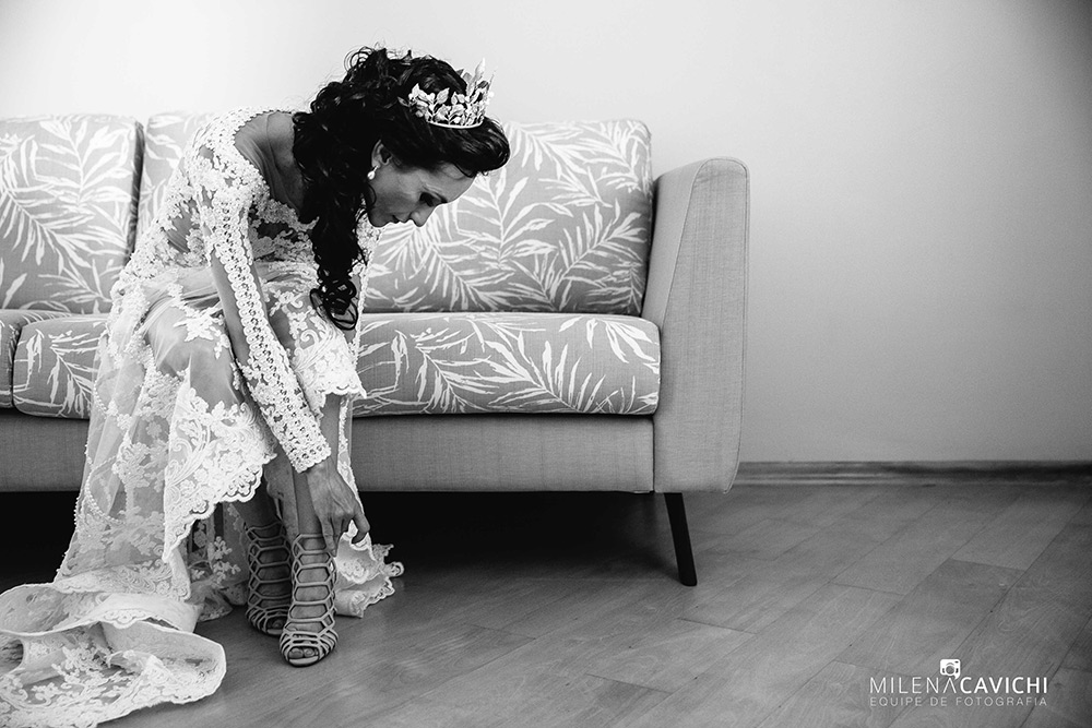 O que finalizou o visual foi uma coroa que aluguei. Eu tinha visto a coroa em um site de noivas e me apaixonei… Era uma peça muito linda e delicada, parecia de rainha. No começo fiquei meio apreensiva, achando que carregaria o visual, mas a Maíra Paiva foi tão prestativa que me mandou um modelo em papel, tipo dobradura, para eu ver o tamanho e fazer o teste de como ficaria. Tudo isso antes de alugar a peça que, a propósito, veio de Belo Horizonte. Bom, como você vai ver, eu a usei no dia! E acho que tomei a melhor decisão… Ficou muito bonito!